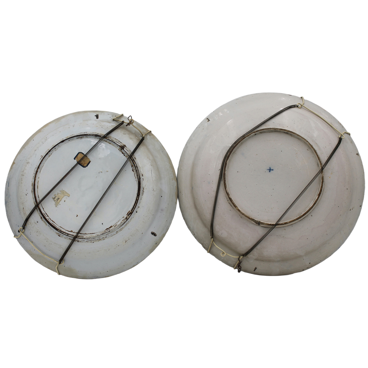 € 300Antica maiolica con decoro a motivi floreali e vegetali in azzurro (lievi sbeccature nei bordi. Italia settentrionale. Inizi secolo XIX. Cm d 34, cm d 31