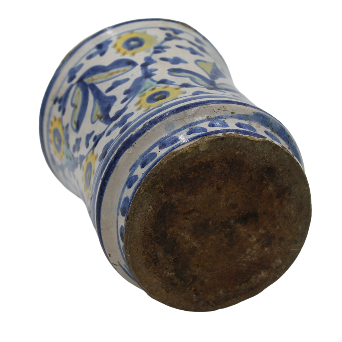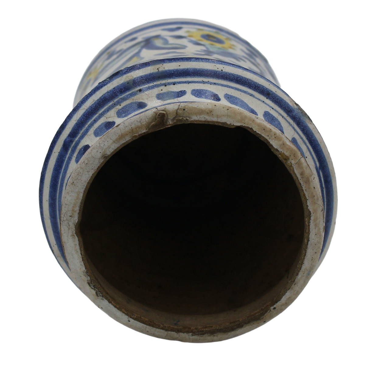 € 400Antica maiolica decorata a tutto tondo a motivi floreali e vegetali policromi (lievi failure). Possibile Sciacca. Secolo XVIII. Cm h 20