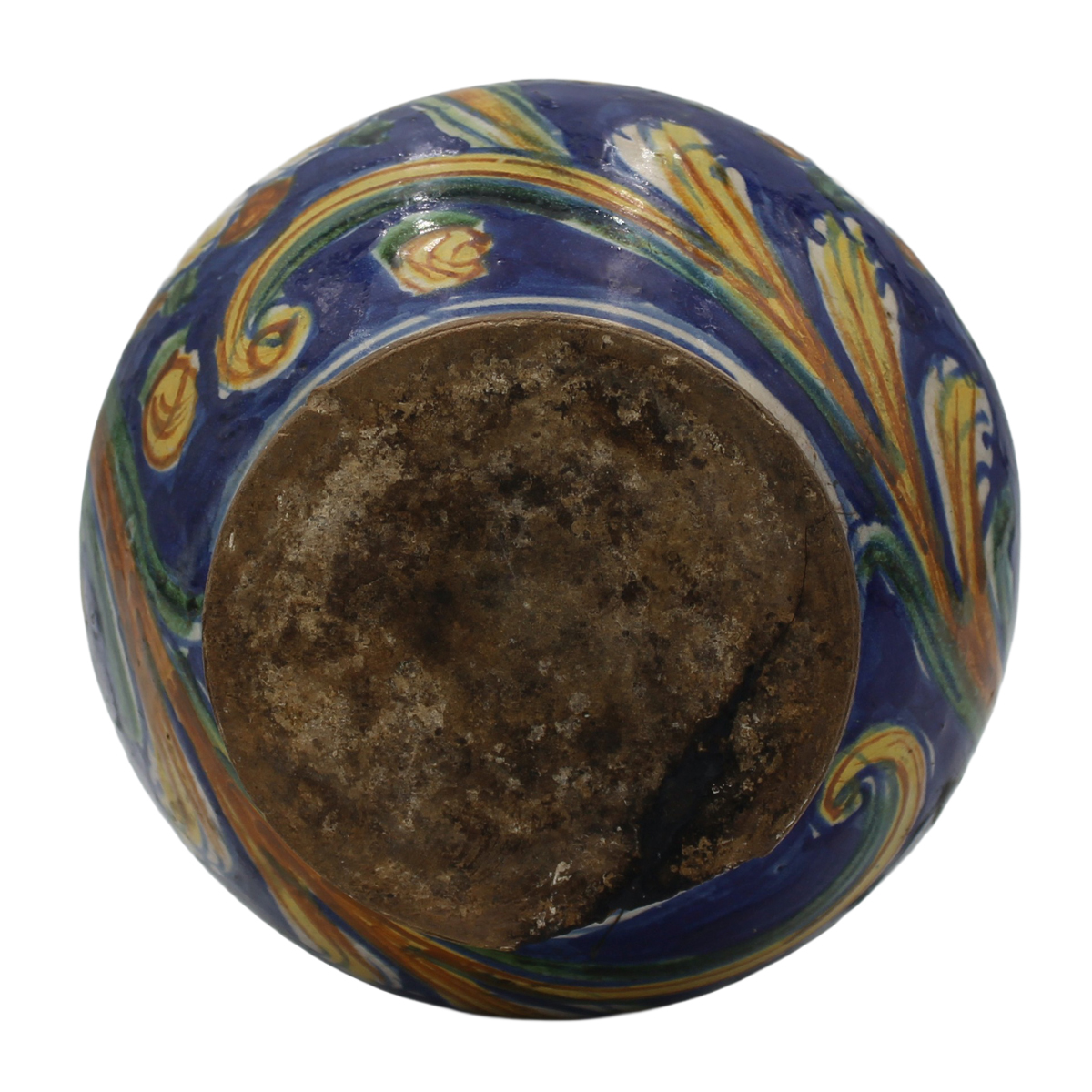 € 400Antica maiolica con decoro a tutto tondo a motivi floreali e vegetali policromi. Gerace Calabro. Secolo XVIII. Cm h 23