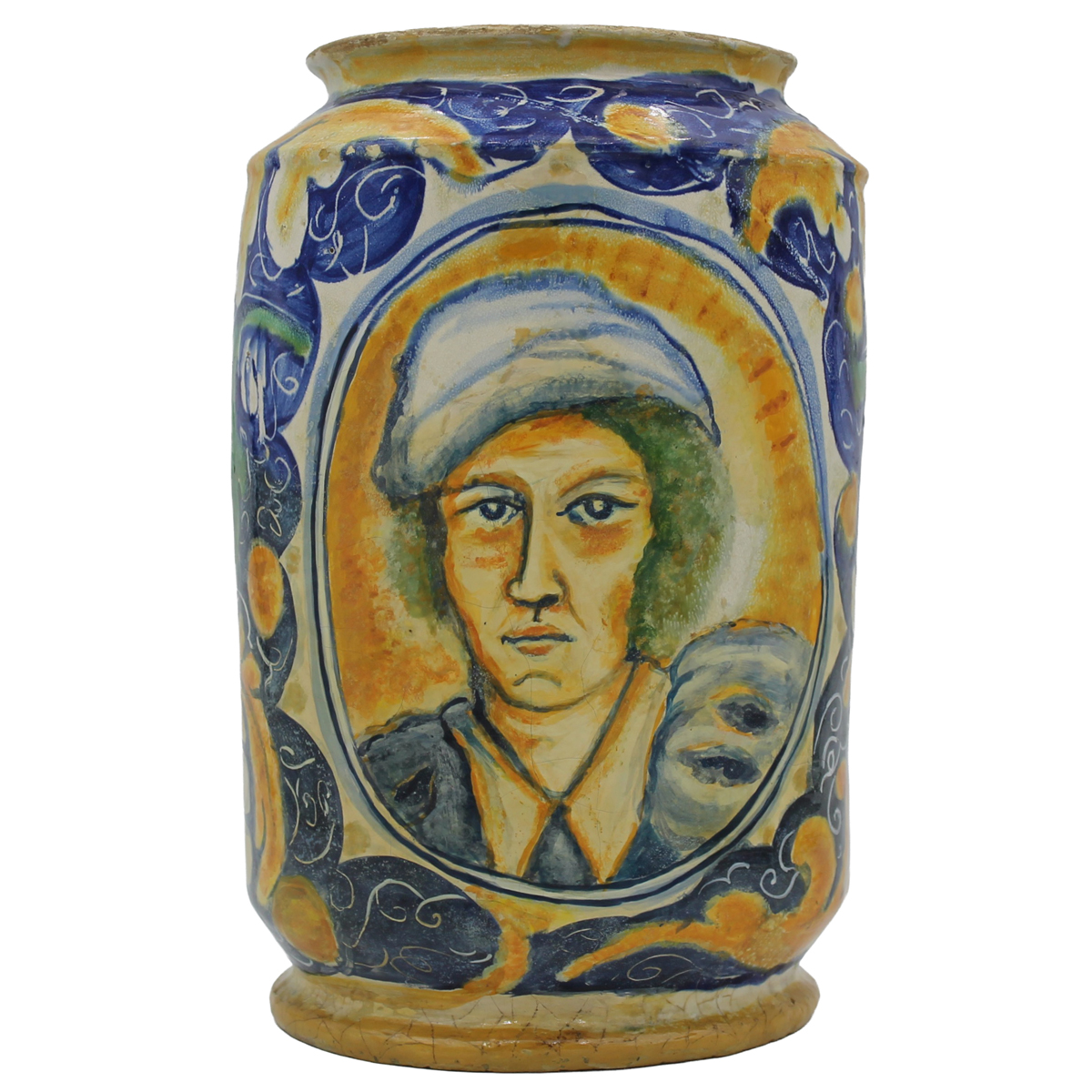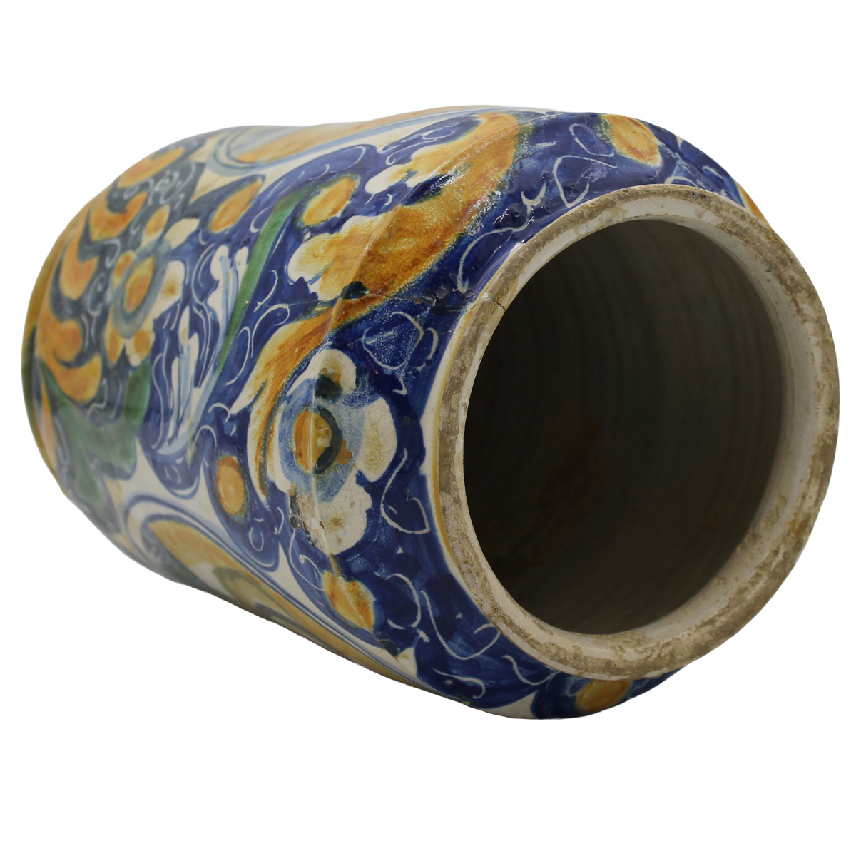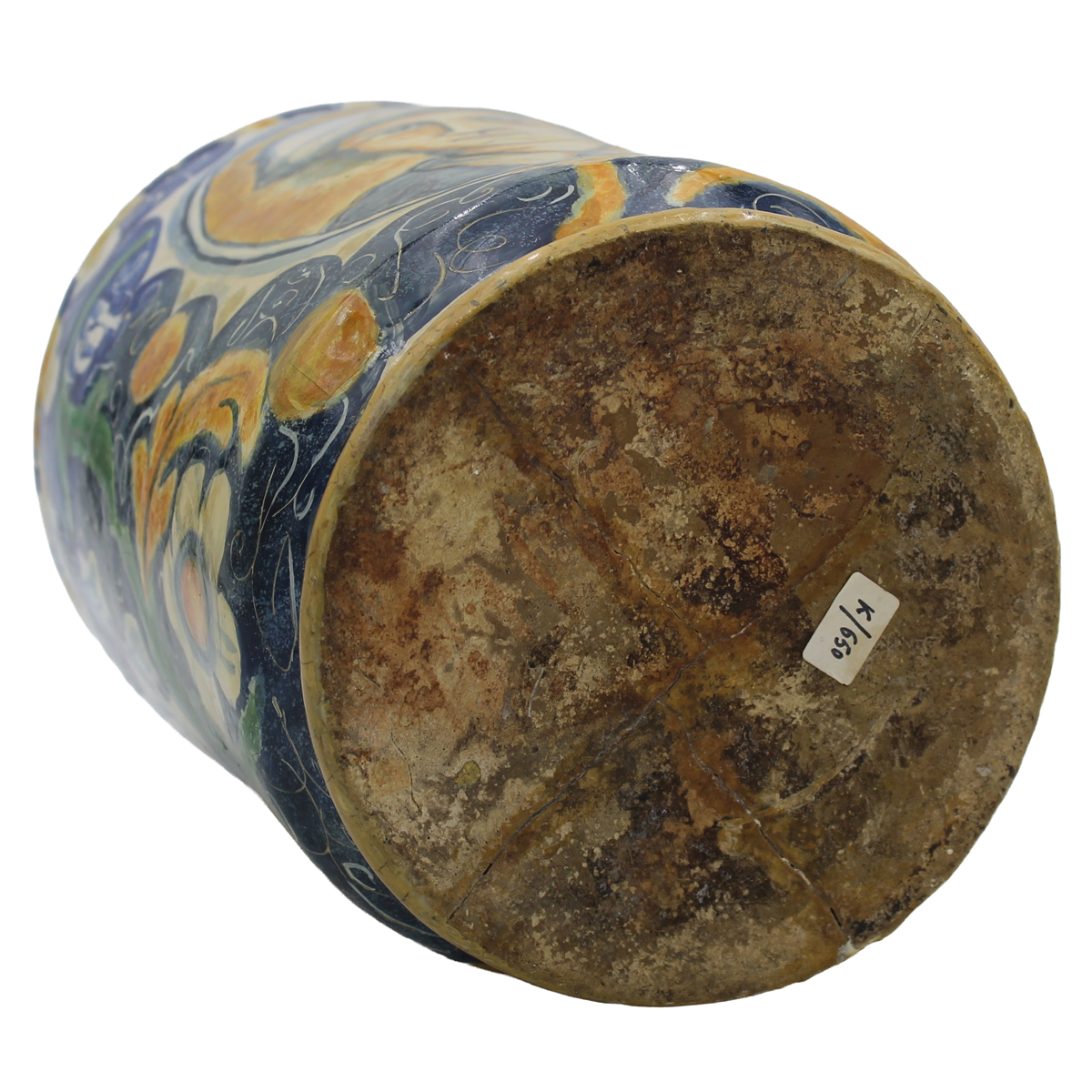 € 800Antica maiolica con decoro a doppio medaglione con figure femminili e motivi floreali e vegetali policromi (importanti restauri e failure). Calabria. Secolo XVIII. Cm h 31