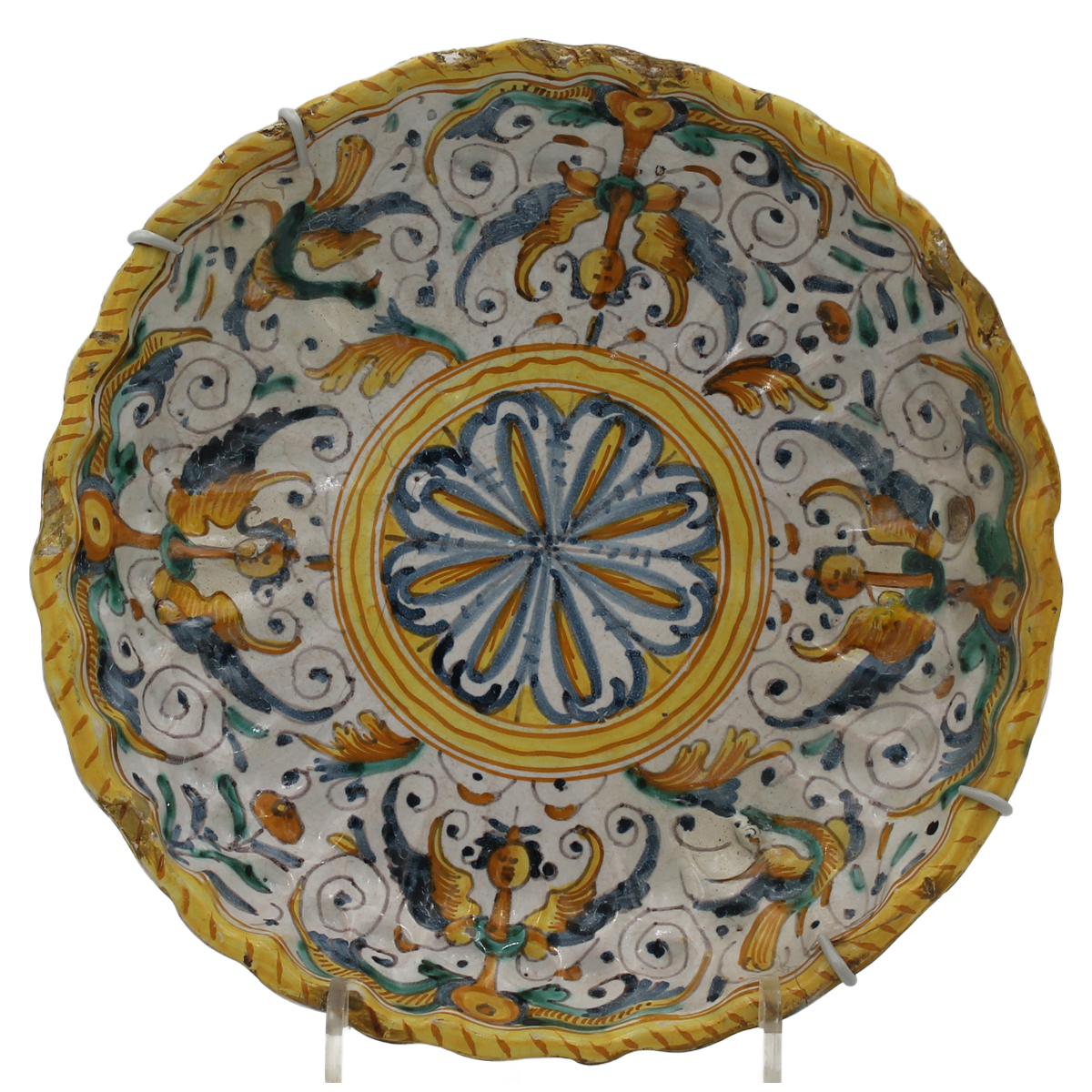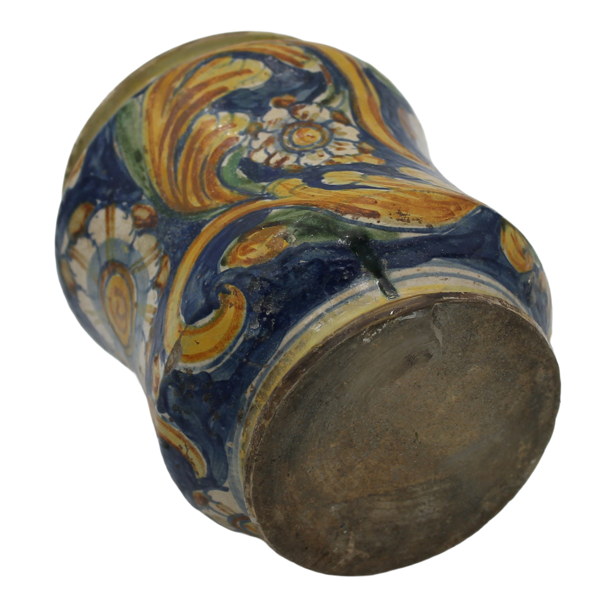 € 200Antica maiolica decorato a tutto tondo a motivi vegetali e floreali policromi (lievi restauri al collo). Calabria. Secolo XVIII. Cm h 16