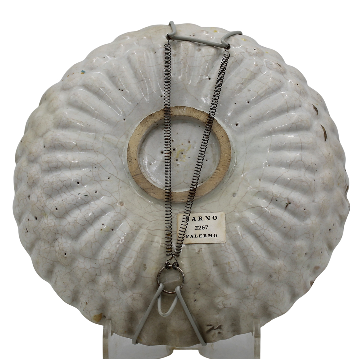 € 400Antica maiolica con decoro a motivi ornamentali e vegetali policromi. Possibile Deruta. Fine secolo XVII. Cm d 24