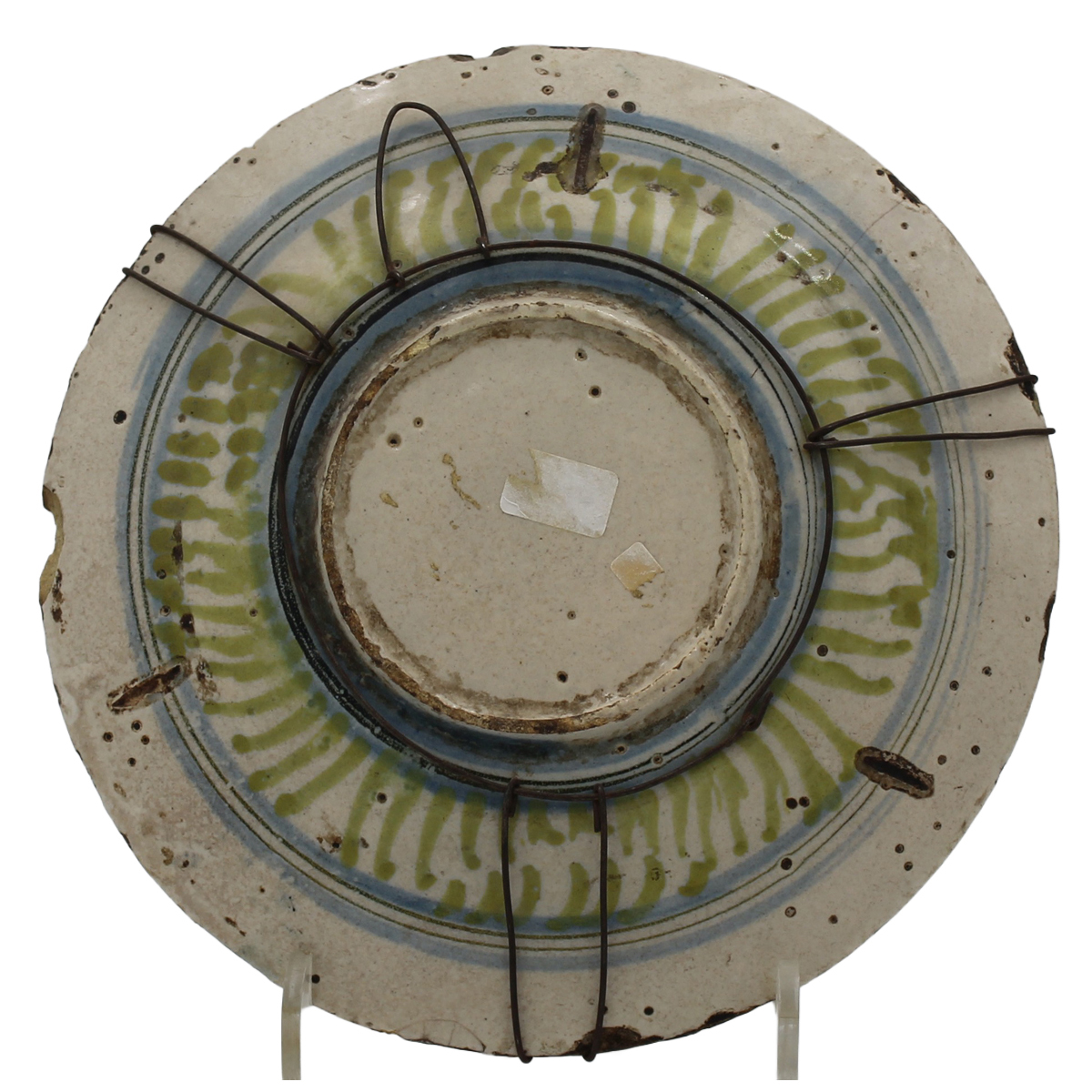 € 100Antica maiolica con decoro centrale raffigurante lepre e sul bordo decoro a fiori e motivi ornamentali policromi (difetti e sbeccature sul bordo). Italia centrale. Secolo XVIII. Cm d 21,5