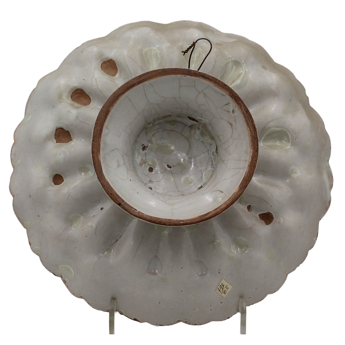 € 250Antica maiolica con figura di lepre centrale e contorno di ornamenti floreali e vegetali policromi su fondo bianco. Probabile Siena. Fine secolo XVIII. Cm d 26