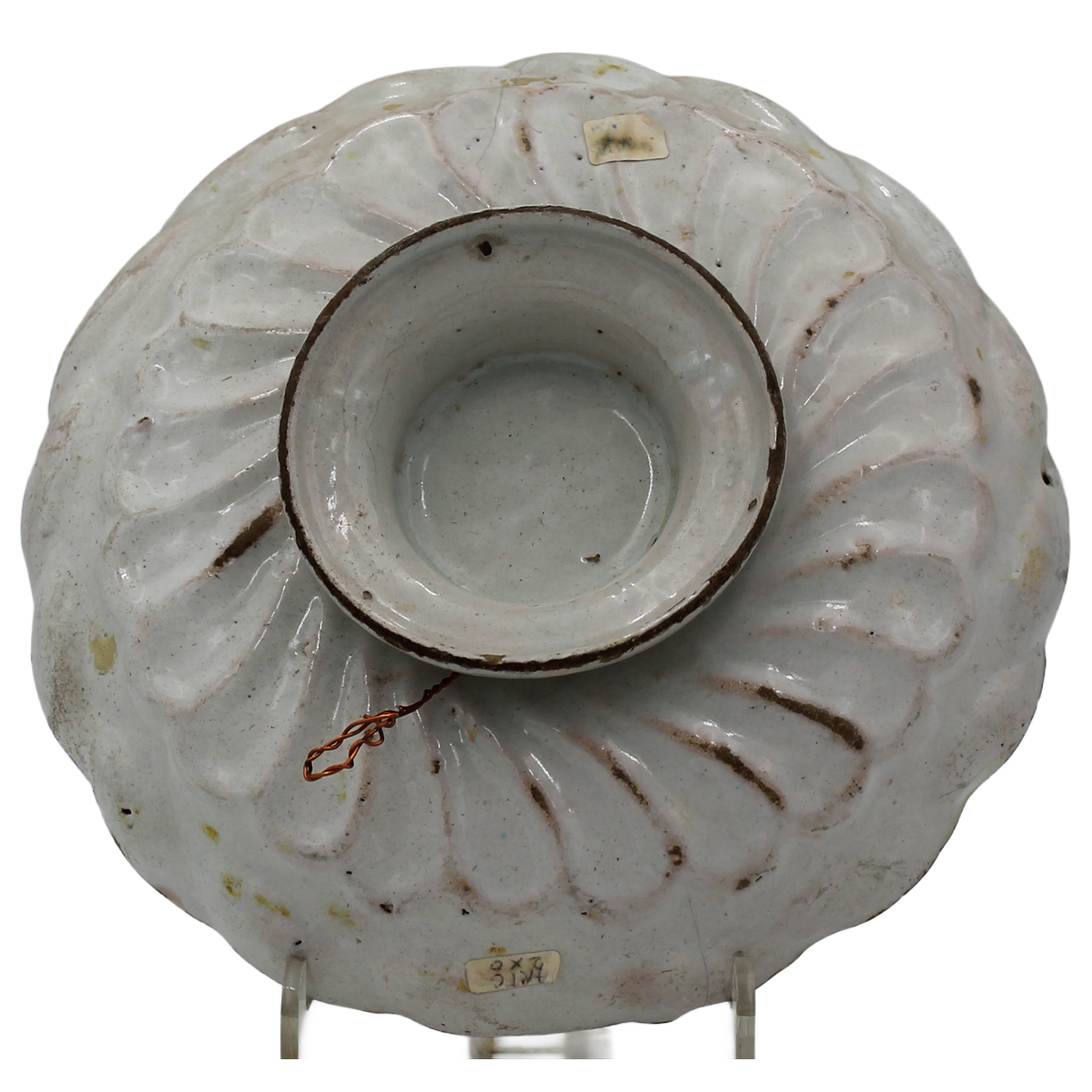 € 400Antica maiolica decorata con figura femminile al centro contornata da motivi ornamentali e vegetali policromi. Deruta. Secolo XVIII. Cm d 24,5