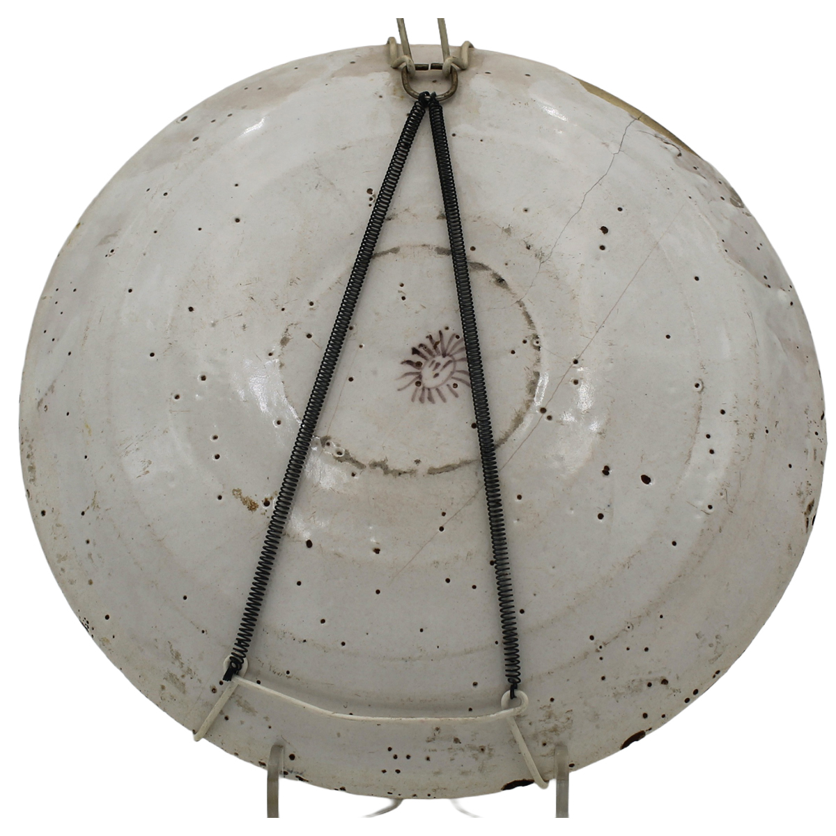 € 150Antica maiolica decorata con volatili policromi su fondo bianco (rotture). Savona. Fine secolo XVIII. Cm d 30,5