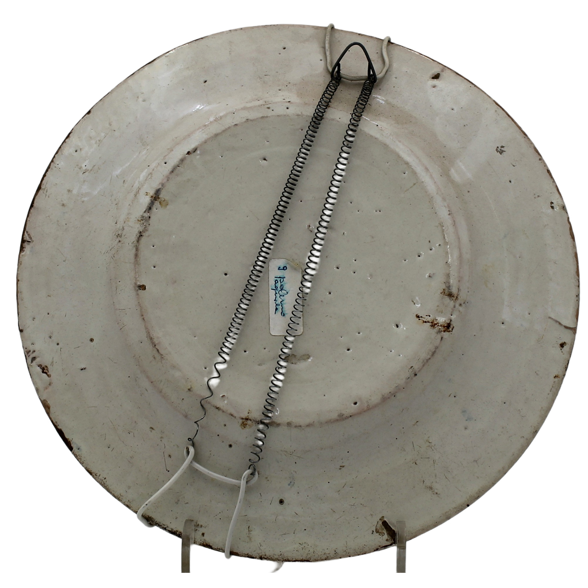 € 200Antica maiolica con decoro centrale raffigurante aquila bicipite e motivi ornamentali policromi sui laterali. Italia meridionale. Secolo XVIII. Cm d 28