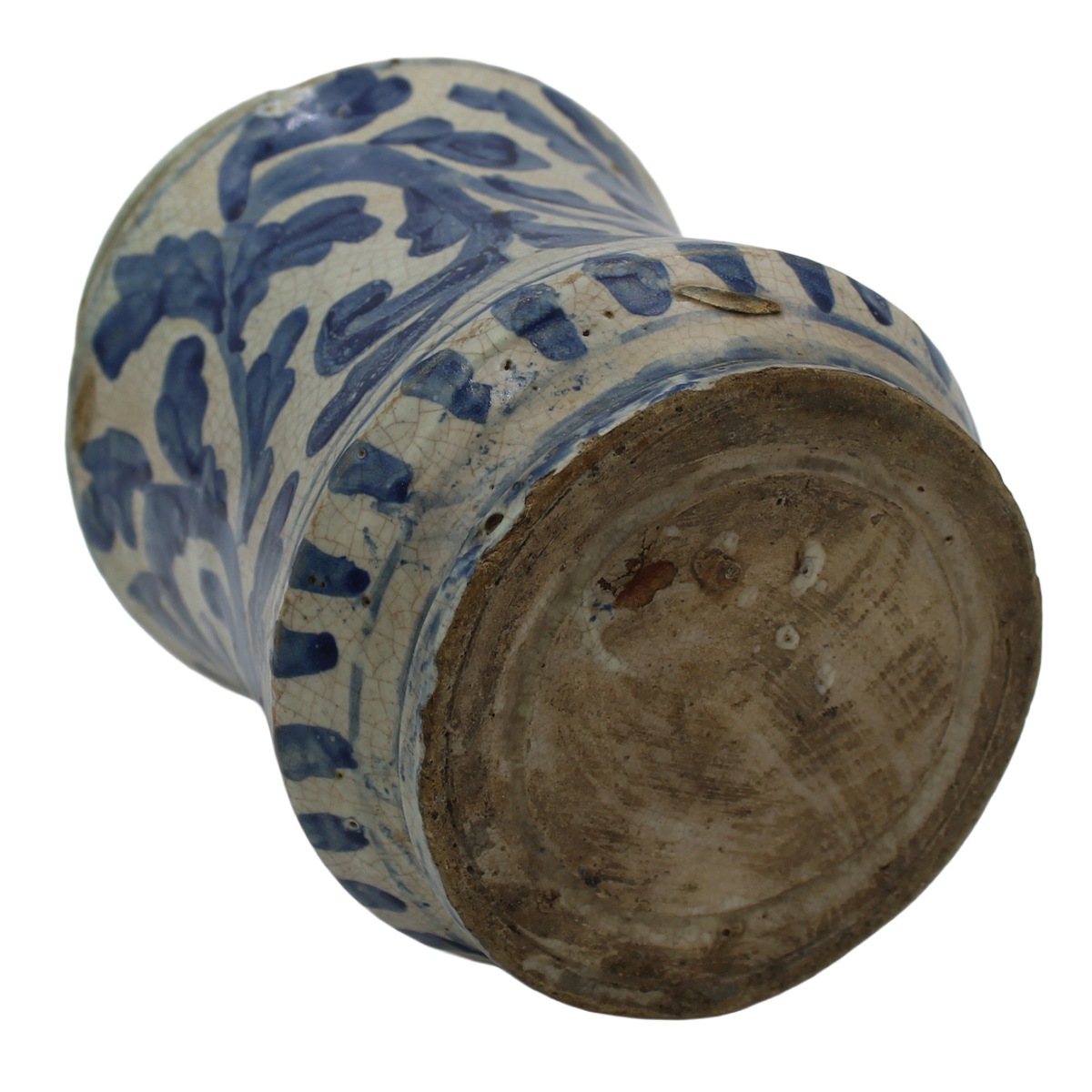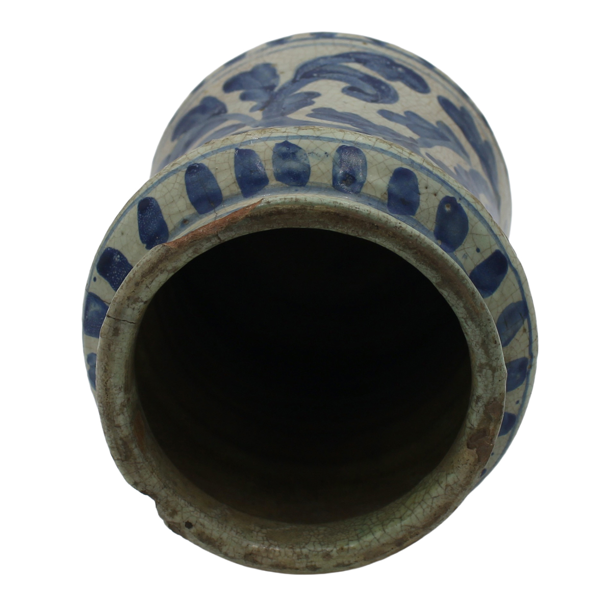 € 300Antica maiolica con decoro a tutto tondo a motivi vegetali in azzurro su fondo bianco (failure al collo). Caltagirone. Seconda metà del secolo XVIII. Cm h 20,5