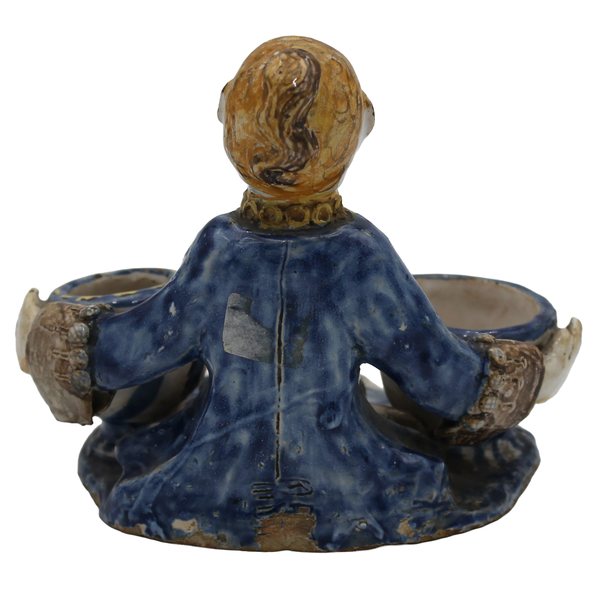 € 700Antica maiolica con figura antropomorfa policroma su fondo bianco (lievi mancanze) Caltagirone. Inizi secolo XIX