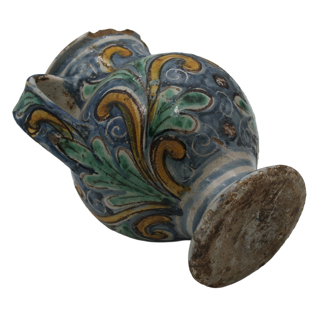 € 500Antica maiolica con decoro a tutto tondo a motivi vegetali policromi. Caltagirone. Inizi secolo XVIII. Cm h 20