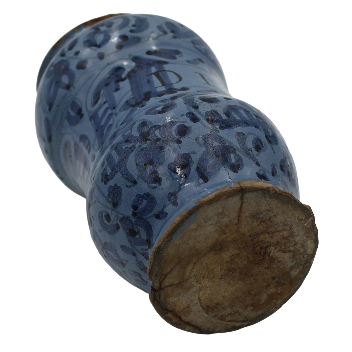 € 200Antica maiolica decorata con iscrizione centrale e motivi ornamentali (failure). Venezia. Fine secolo XVIII. Cm h 21