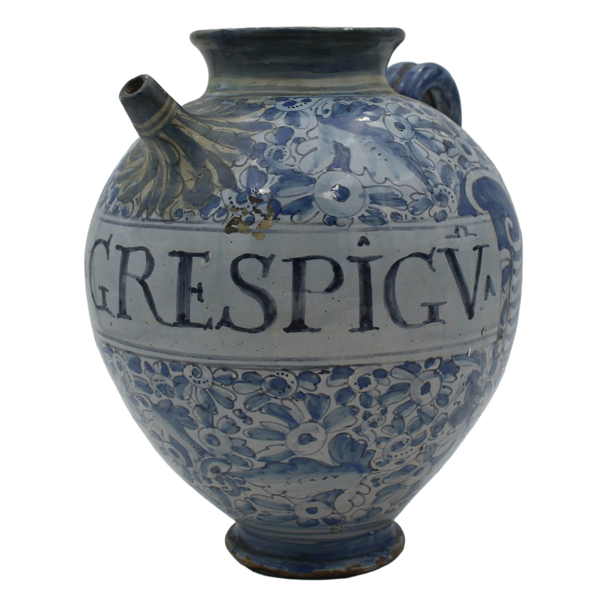 € 80Antica maiolica decorata a motivi vegetali e floreali policromi su fondo bianco (rotture). Italia meridionale. Secolo XIX. Cm 29,5x23