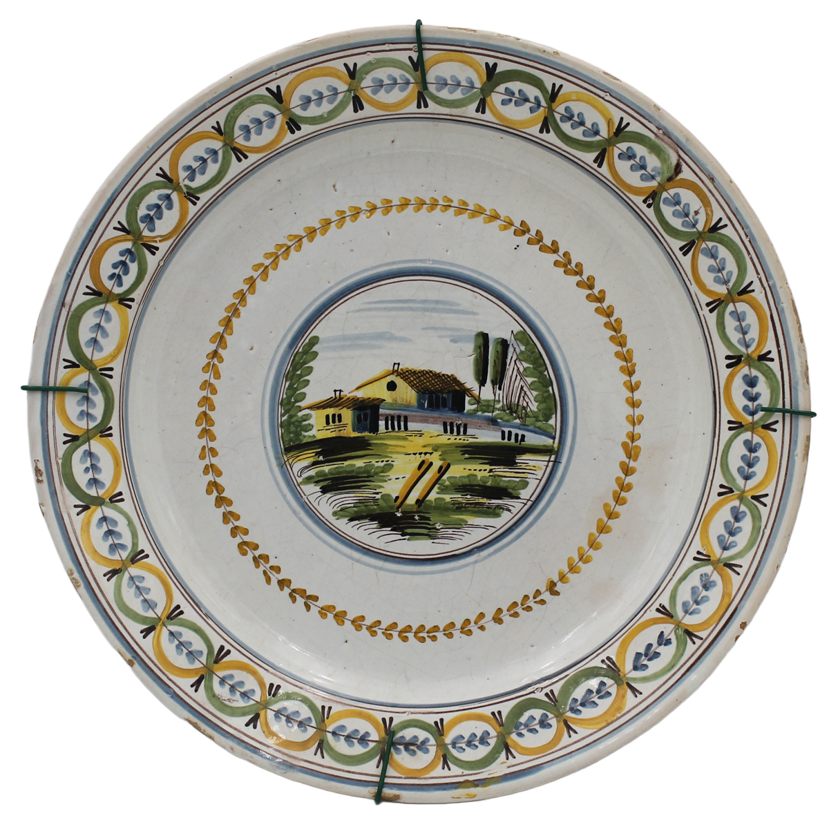 € 80Antica maiolica decorata a motivi ornamentali policromi (danni e mancanze). Savona. Secolo XIX. Cm d 26