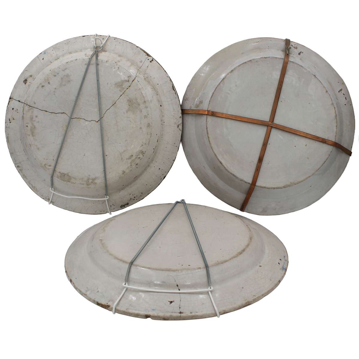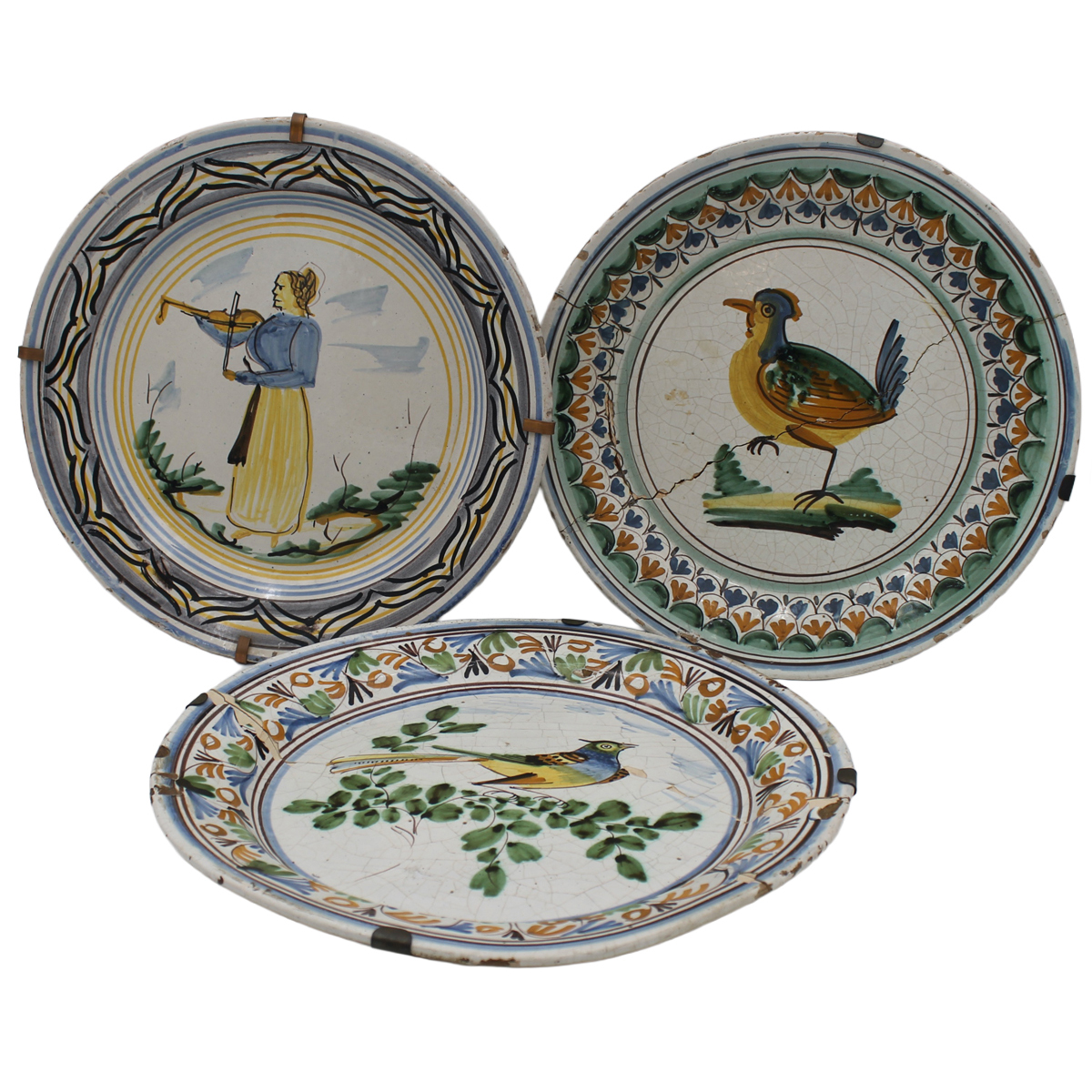 € 500Antica maiolica con decoro centrale raffigurante volatili e paesaggi con casolari (rotture su tre piatti). Decoro ornamentale policromo sul laterale. Vietri. Secolo XIX. Cm d 45