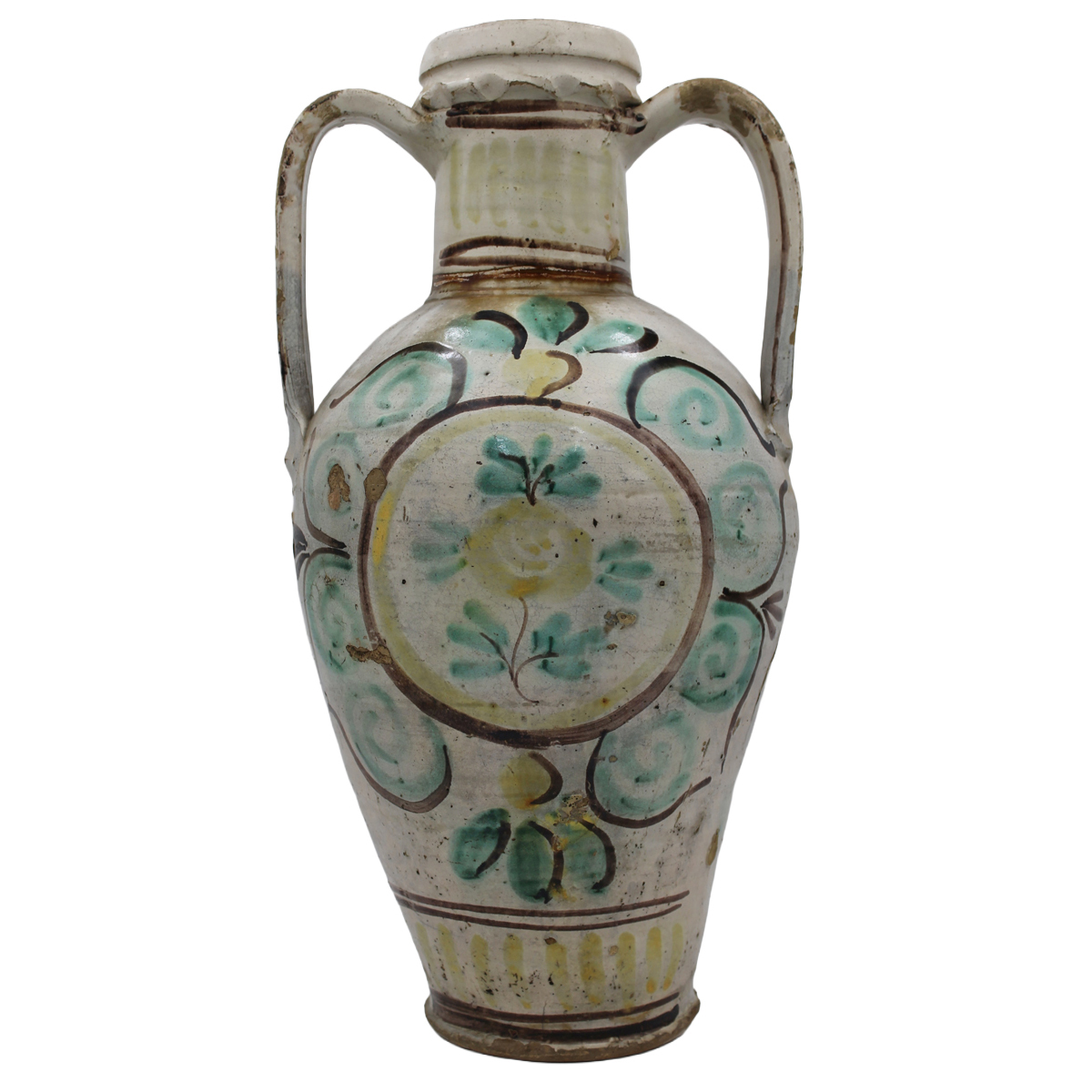 € 250Antica maiolica con decoro a motivi vegetali policromi su fondo crema (lievi mancanze). Caltagirone. Datata 1911. Cm h 65