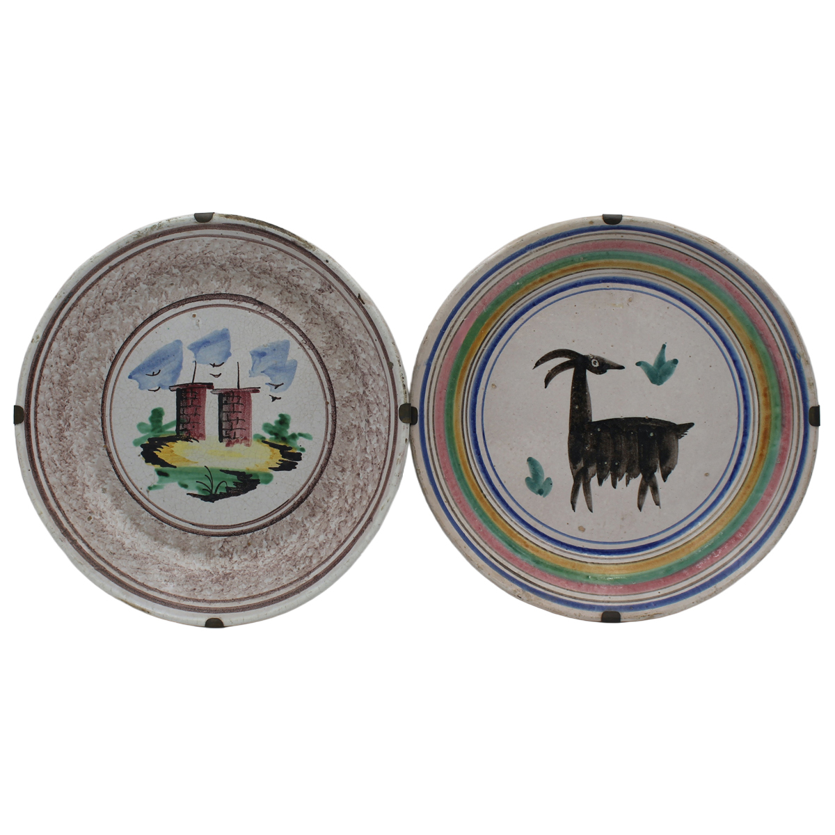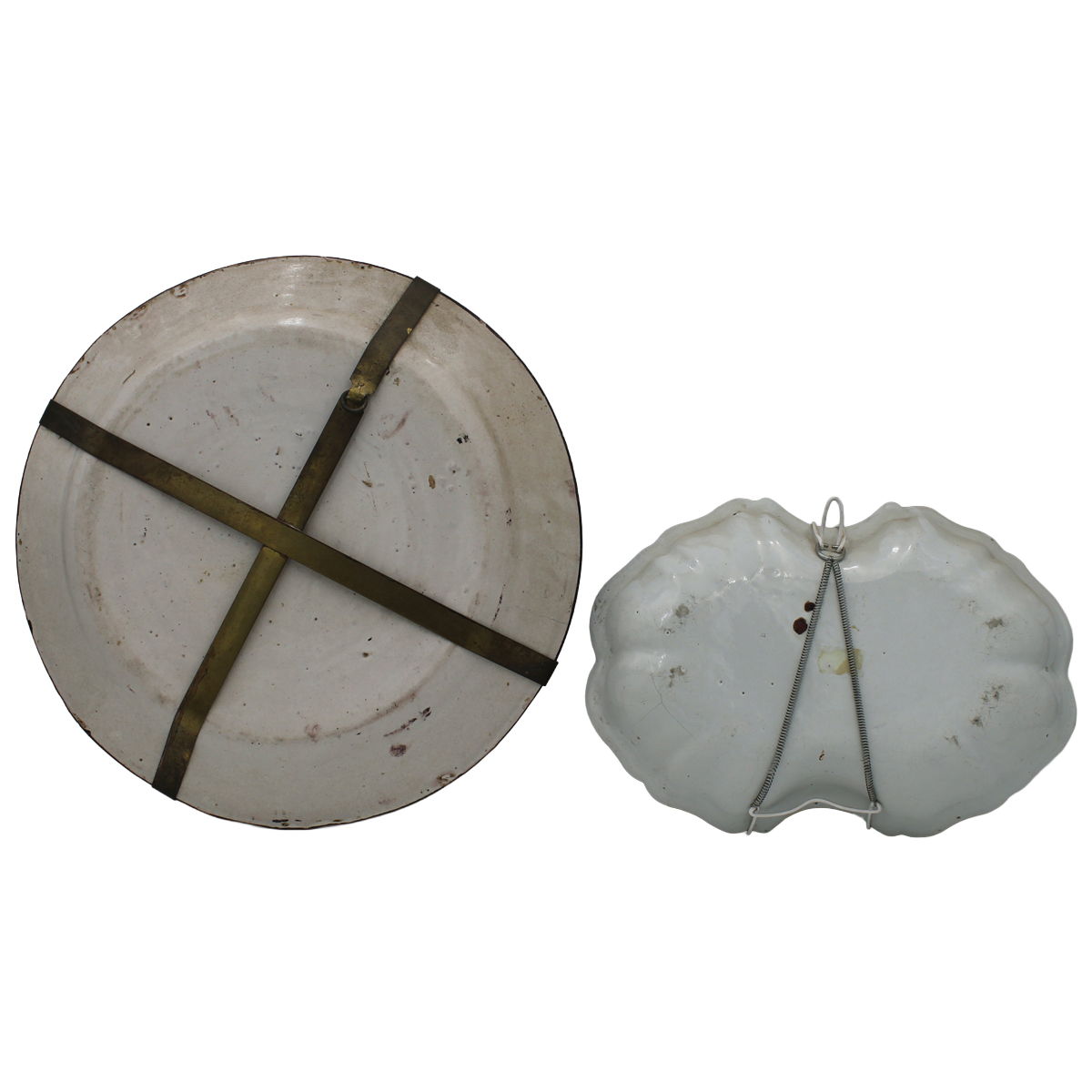 € 200Antica maiolica con decoro a motivi vegetali e trofei (rotture su di un piatto). Campania. Secolo XIX. Cm d 42 (piatto)
