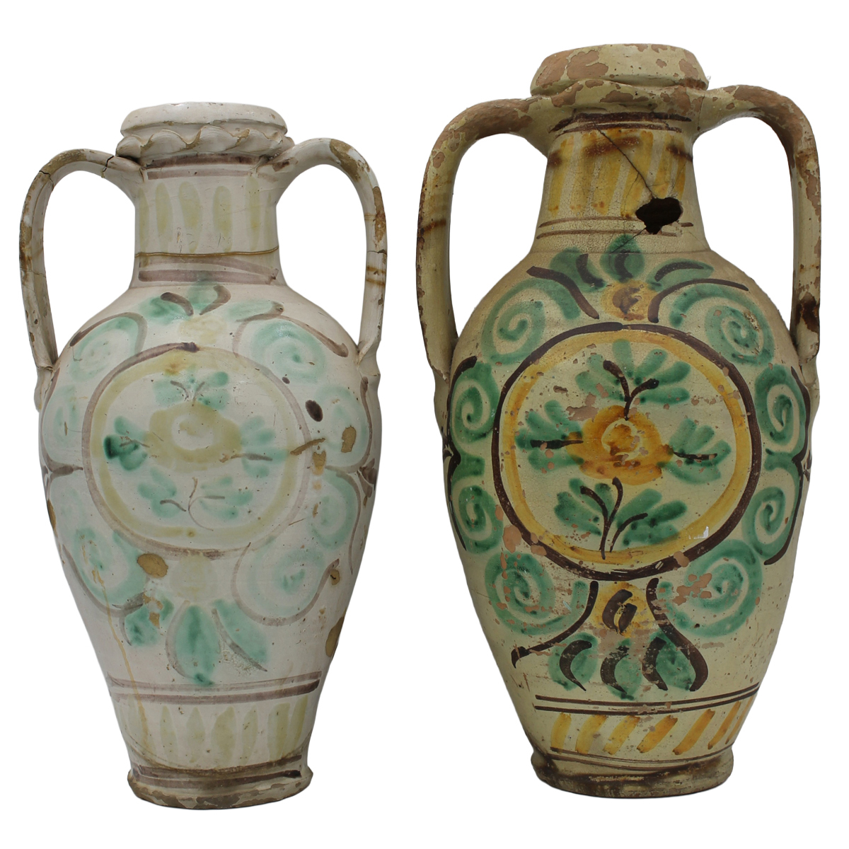 € 200Antica maiolica con decoro centrale raffigurante volatile e motivi floreali policromi su fondo crema. Caltagirone. Secolo XIX. Cm h 38