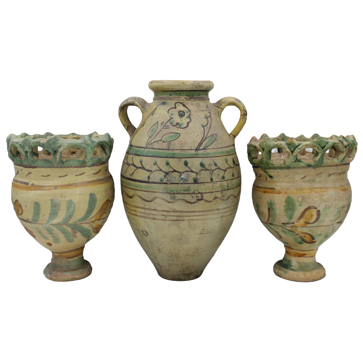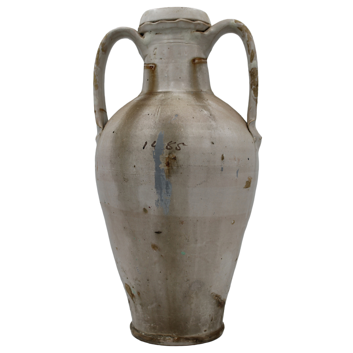 € 200Antica maiolica con decoro a motivi floreali e vegetali policromi su fondo crema (failure su di un manico). Caltagirone. Datata 1885. Cm h 61