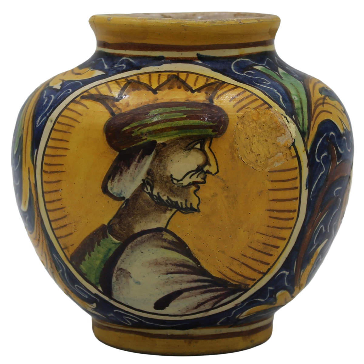 € 100Maiolica policroma con decoro a motivi vegetali e frutta (due cestini presentano rotture). Sicilia. Secolo XX. Cm h 23, cm d 23