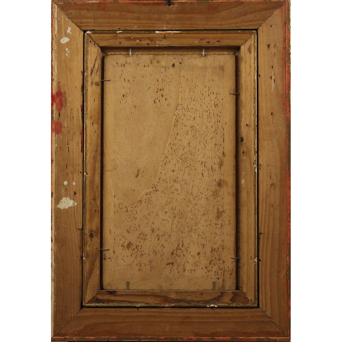 € 500Olio su tavolia in cornice in legno dorato. Cm 29x16