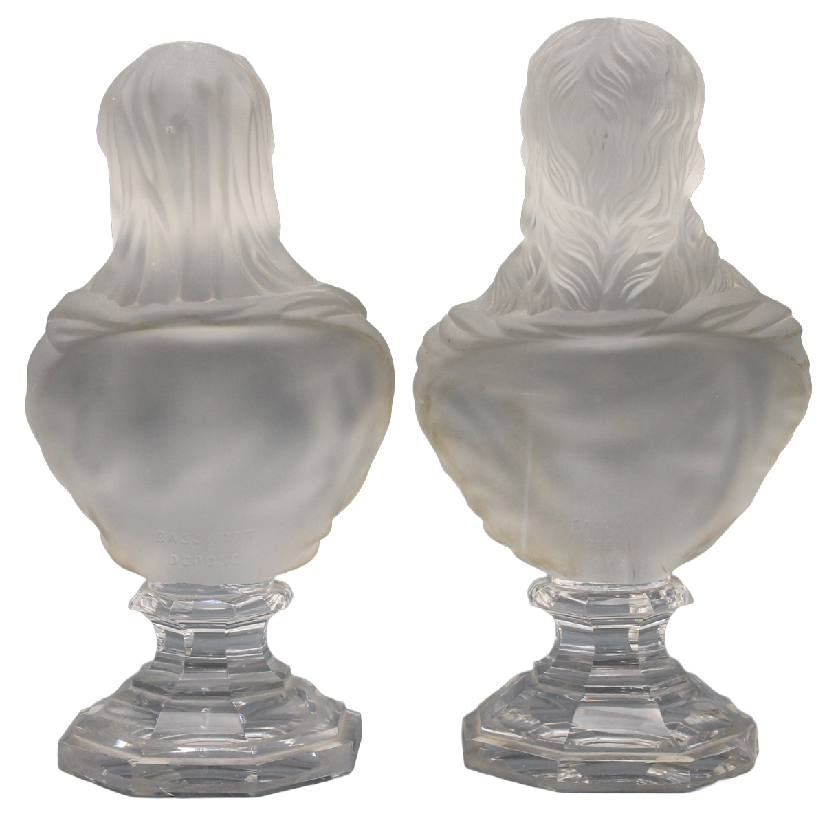 € 200Due mezzi busti in cristallo (danni ai piedi). Marcati Baccarat. Cm h 27