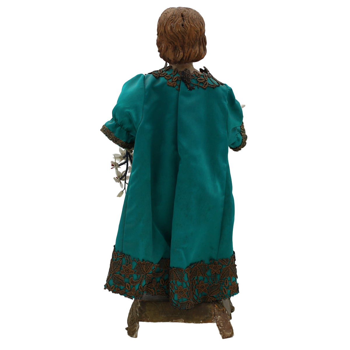 € 450Legno scolpito con abiti ricamati e base in legno dorato. Italia meridionale. Secolo XIX. Cm h 50