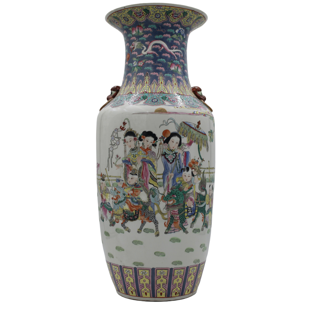€ 750Antica porcella con ricco decoro di scene naturalistiche (lievi restauri al collo). Imari. Fine secolo XVIII inizi secolo XIX. Cm h 43,5