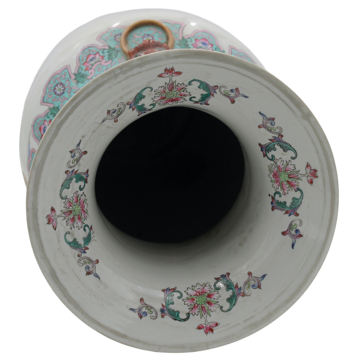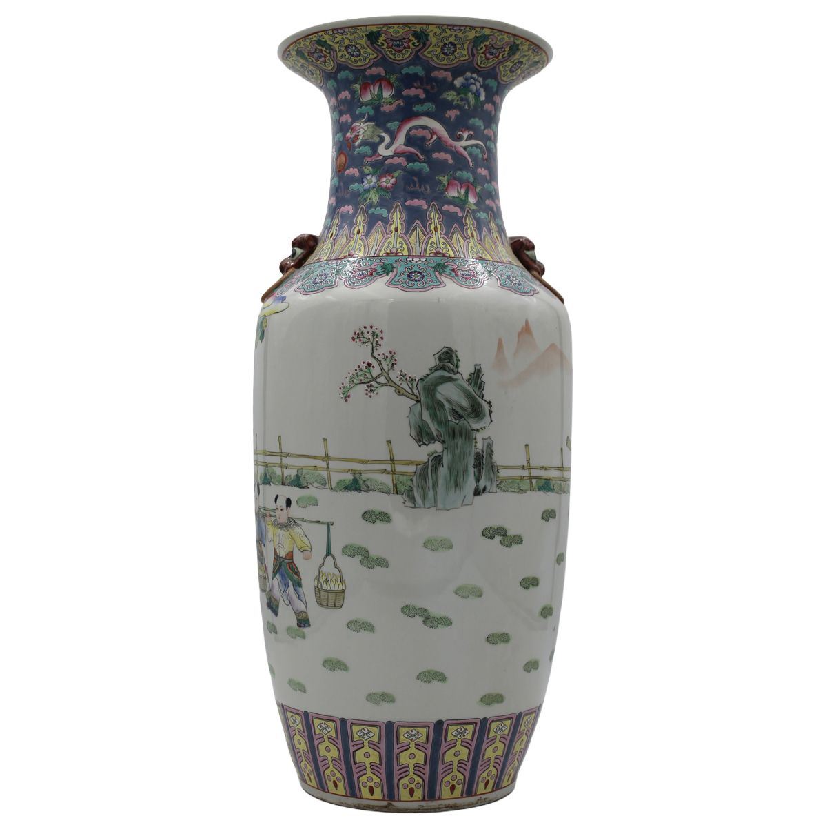 € 350Porcellana policroma con figure orientali e motivi vegetali e floreali. Cina. Fine secolo XIX. Cm h 62