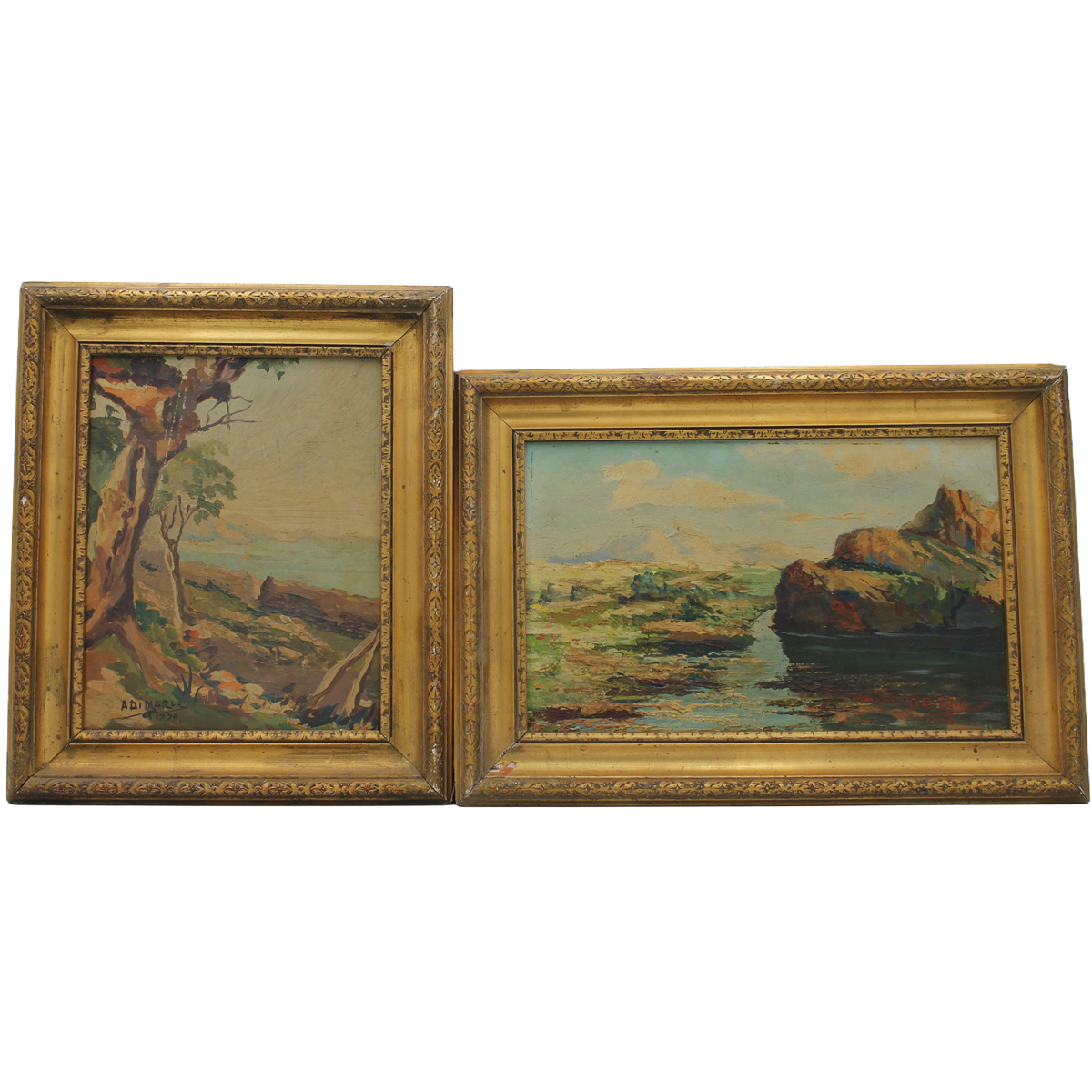 € 300Due dipinti ad olio su tavola in cornice. Datati 1936. Cm 23x36; cm 19x36