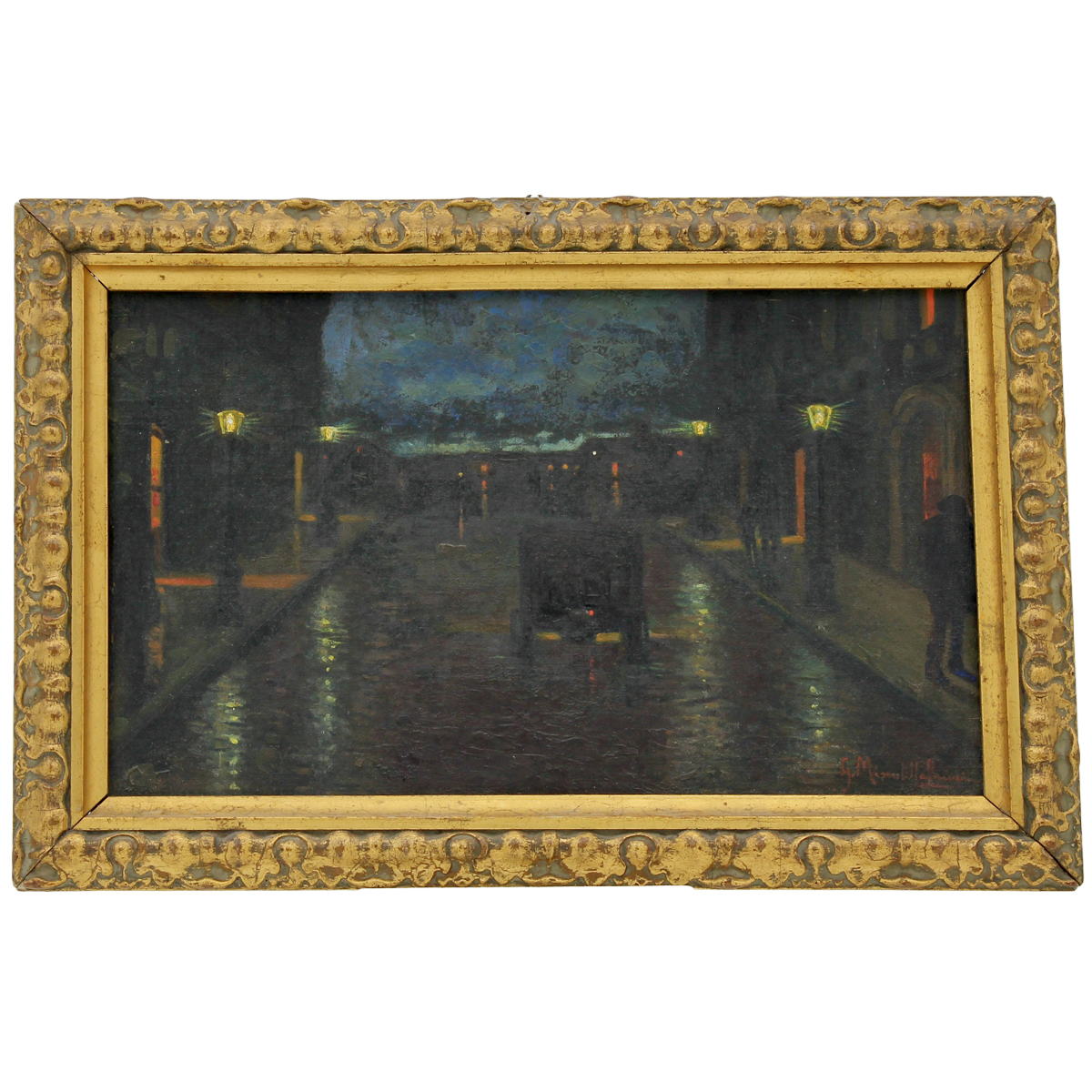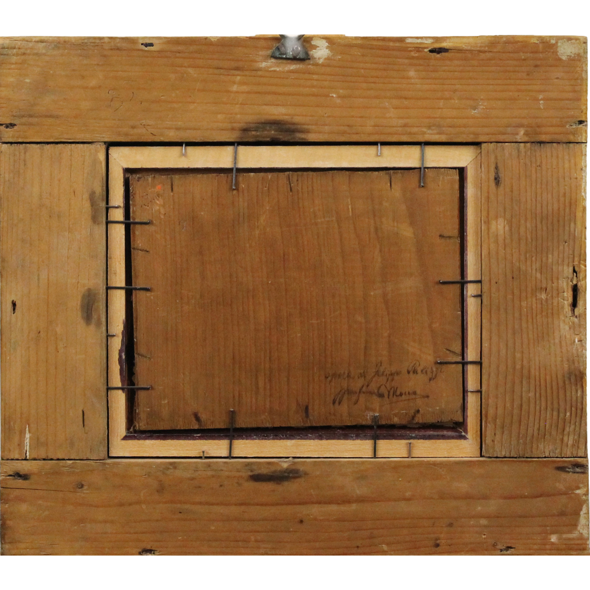 € 500Dipinto ad olio su tavola in cornice in legno dorato a canna spaccata. Cm 14x18