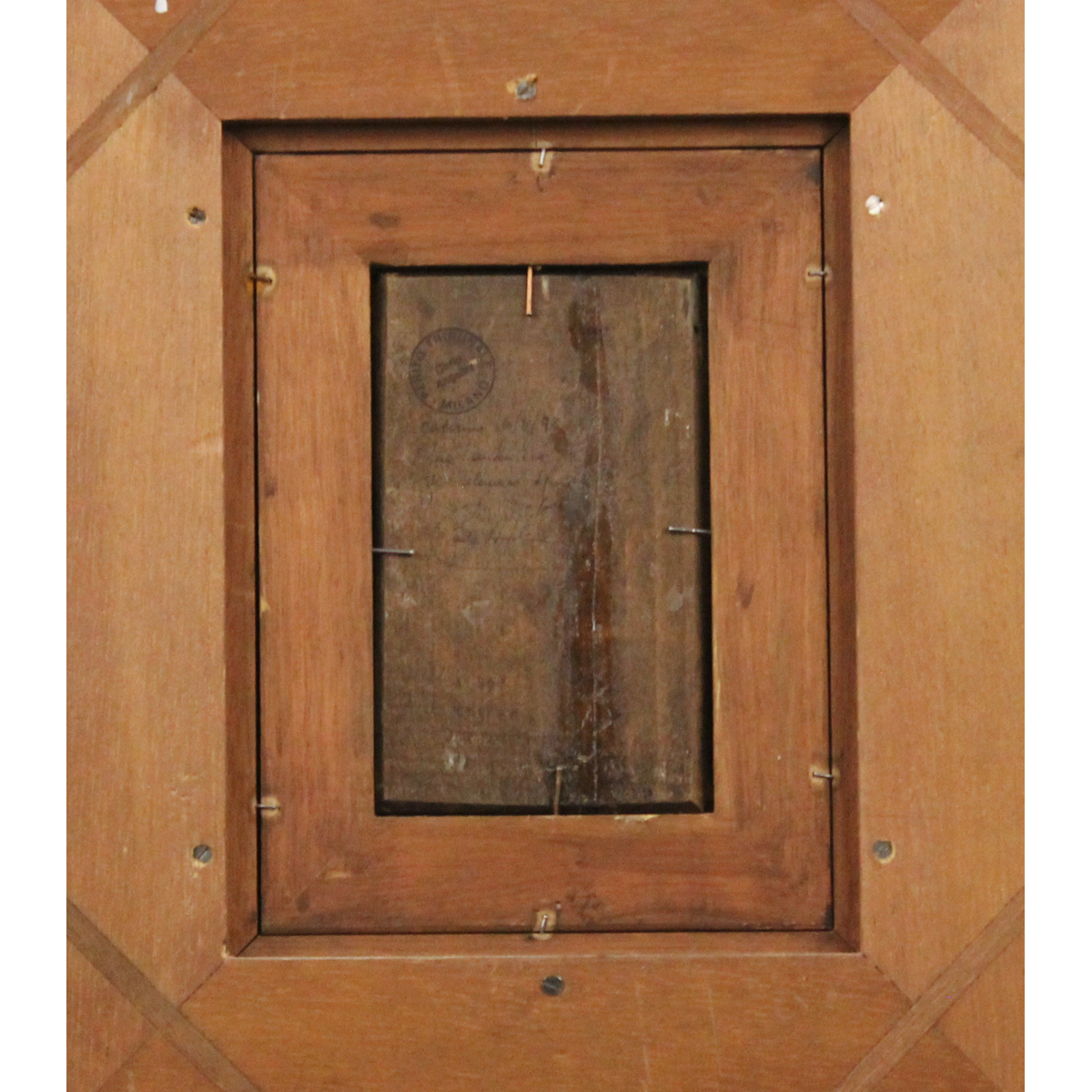€ 2.000Dipinto ad olio su tela applicata su tavola in cornice. Sul retro perizia Carlo Angelini. Cm 15x9,5