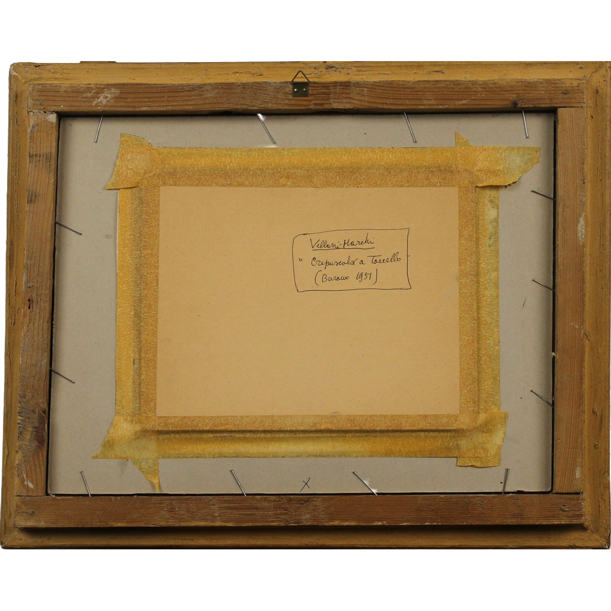 € 300Dipinto ad olio su tavola in cornice in legno dorato a vassoio. Siglato e datato '51. Cm 24x30