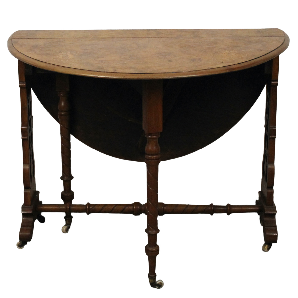 € 120Radica di noce con piedi scolpiti. Inghilterra. Fine secolo XIX. Cm 104x90 h 72