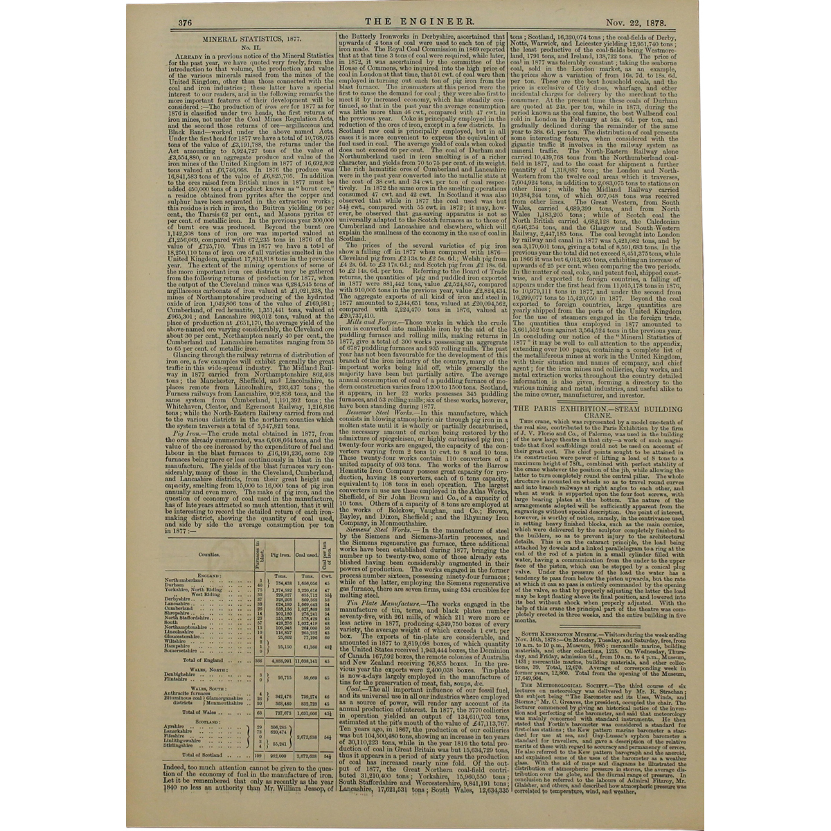 € 100Scheda descrittiva pubblicata sulla rivista "The Engineer" del 22 novembre 1878, pag. 369.