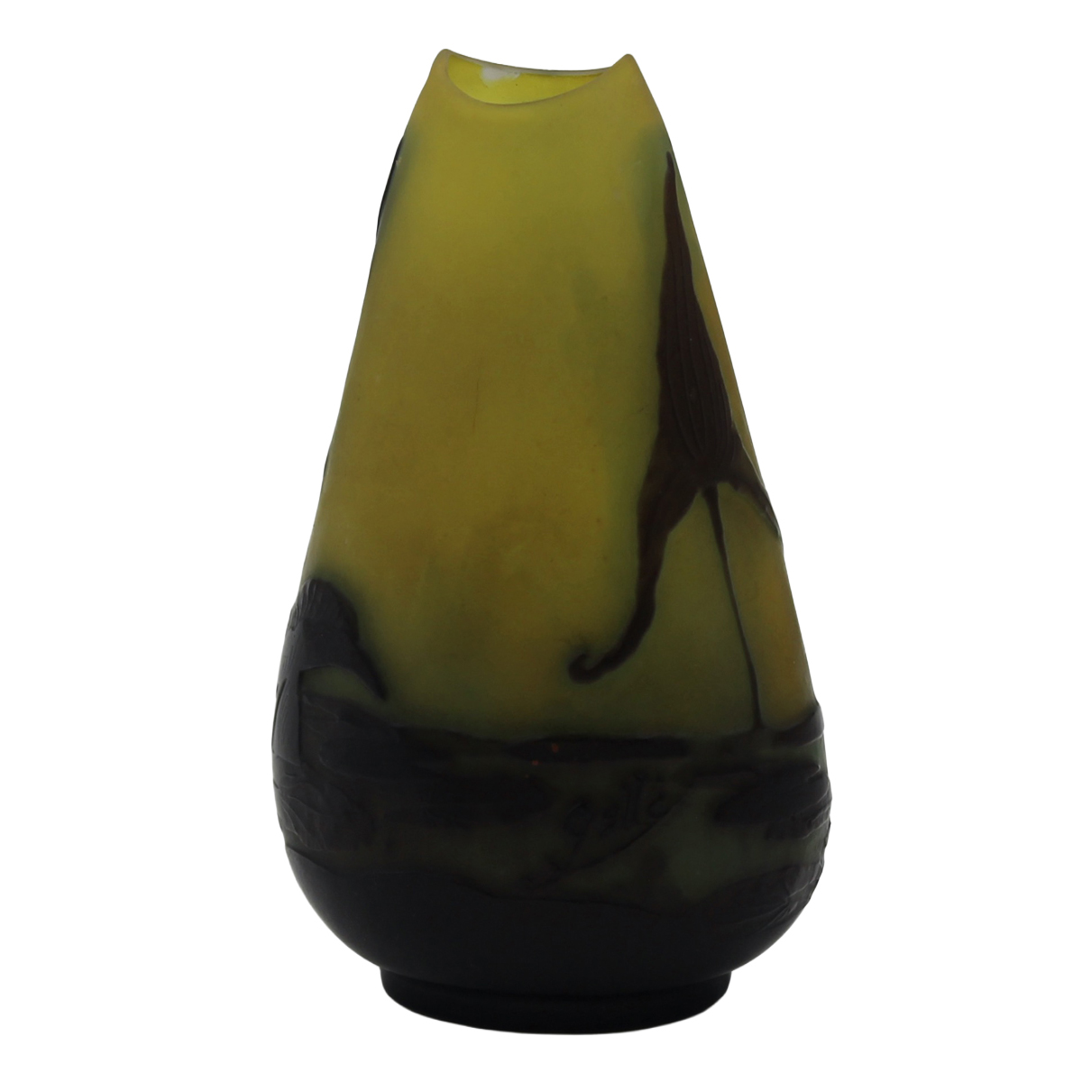€ 250Pasta di vetro con decoro a motivi vegetali policromi. Firmato Gallé. Secolo XX. Cm h 13