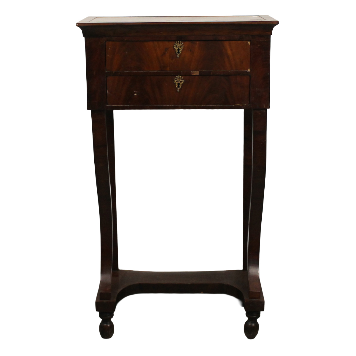 € 150Piuma di mogano con due cassetti centrali e piano in marmo incassato. Siclia. Secolo XIX. Cm 60x32 h 104
