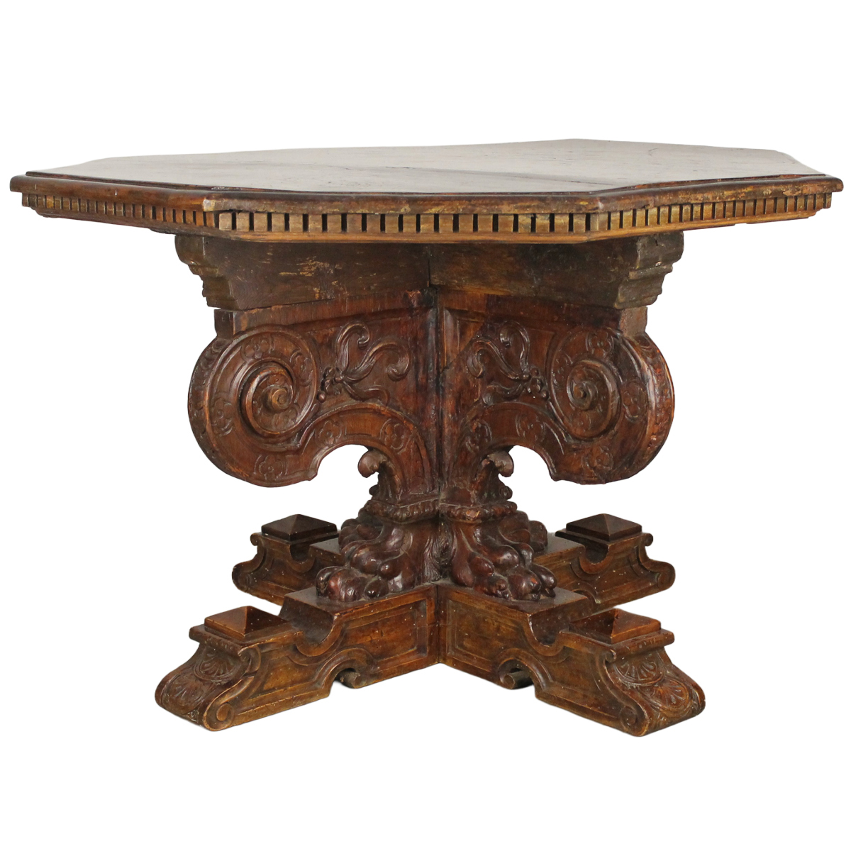 € 400Massello di noce con ricco intarsio al pede a motivi ornamentali e vegetali. Toscana. Secolo XIX. Cm 115 h 77