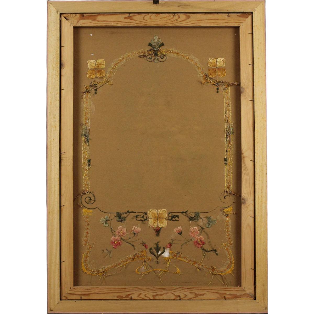 € 150Ricamo su seta con decoro a filo d'oro a rilievo (lievi danni). Sicilia. Fine secolo XIX. Cm 80x54