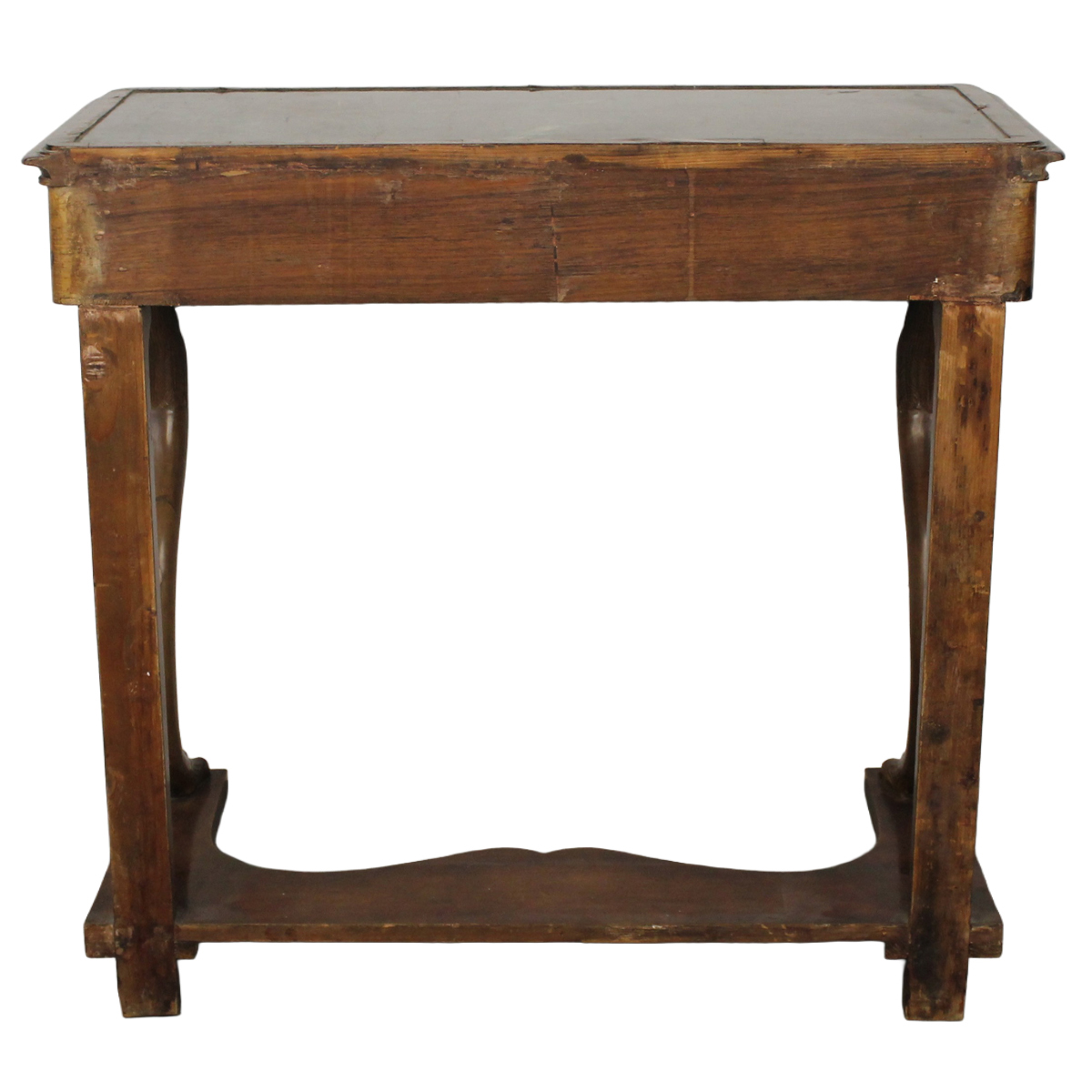 € 150Mogano con cigni laterali scolpito, cassetto centrale e piano incassato in marmo verde delle alpi. Sicilia. Fine secolo XIX. Cm 92x42 h 85