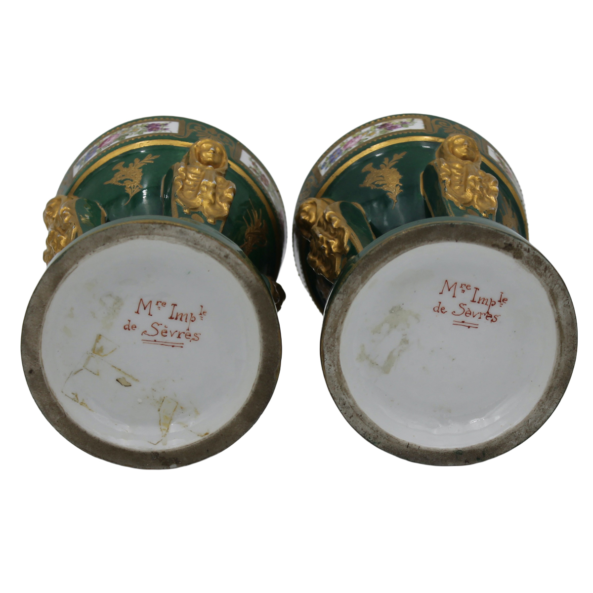 € 450Antica porcellana decorata a figure femminili dorate sui laterali e motivi floreali policromi. Sevres. Secolo XIX. Cm h 16