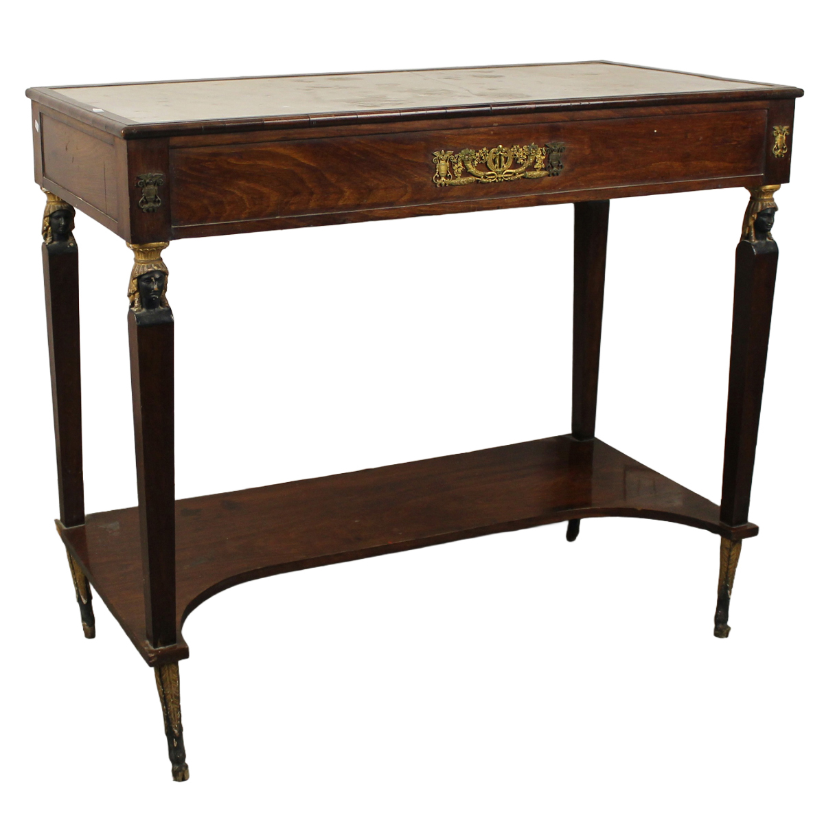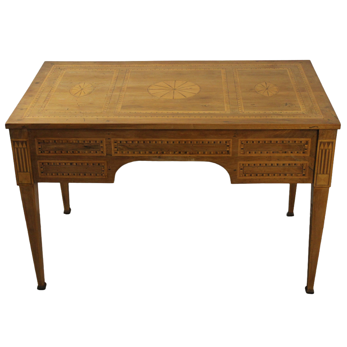 € 400Noce riccamente intarsiato in bosso a motivi geometrici. Sicilia. Fine secolo XIX. Cm 122x70 h 80