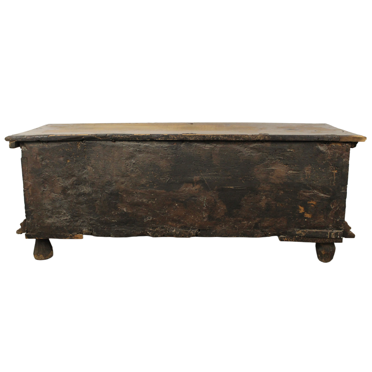 € 600Noce magistralmente scolpito sul davanti con figure di santi e piedi scolpiti. Sicilia. Fine secolo XVI. Cm 173x59 h 67