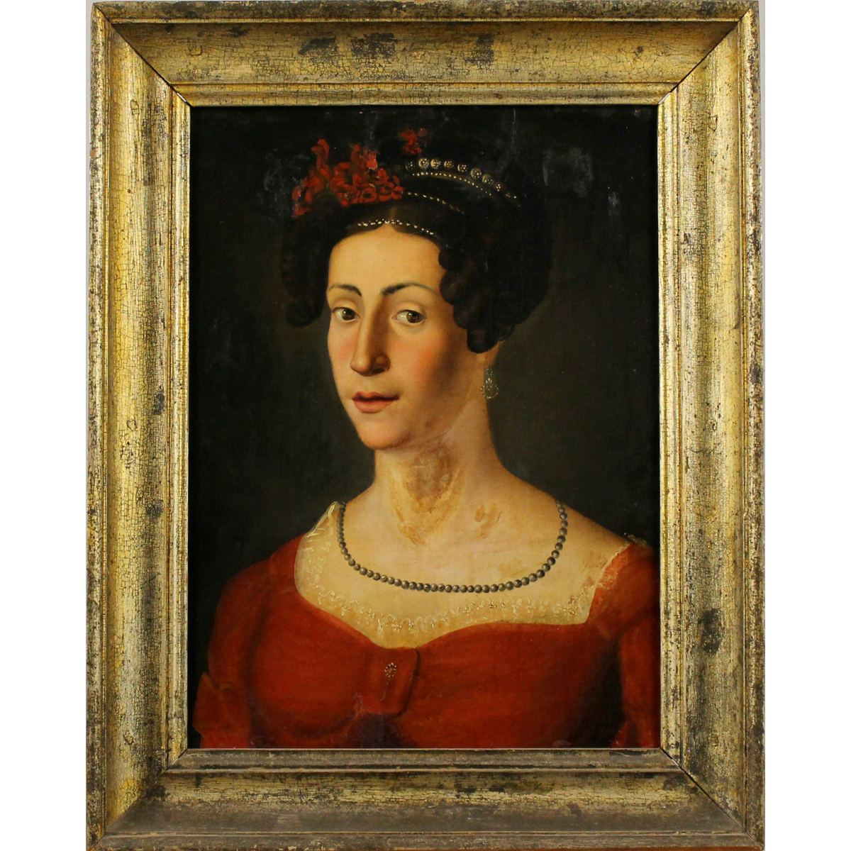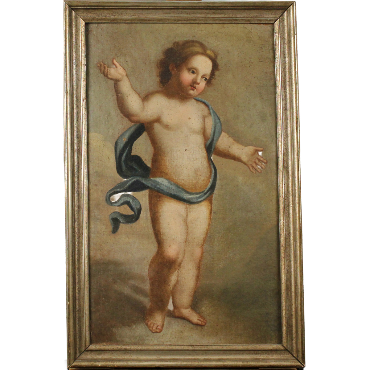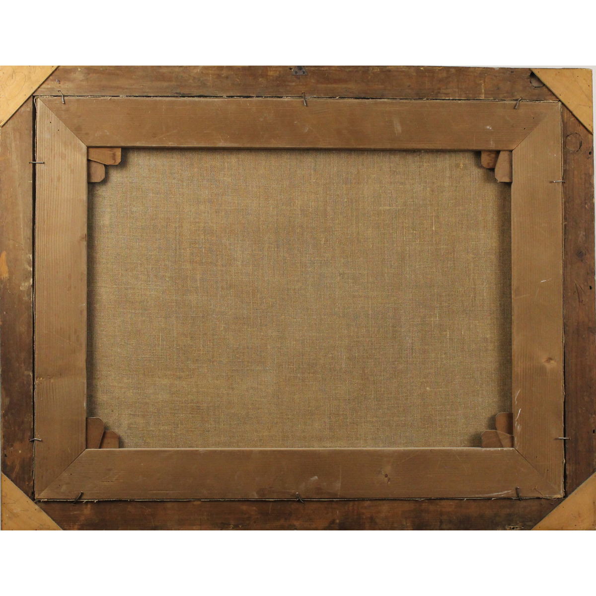 € 400Dipinto ad olio su tela in cornice in legno dorato a canna spaccata (rifodero e restauri). Cm 69x90