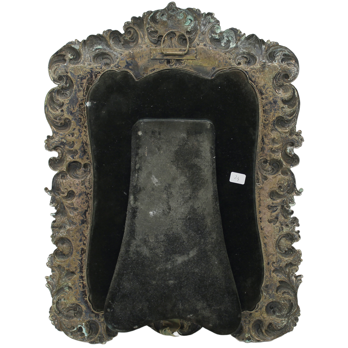 € 400Metallo argentato sbalzato e decorato a motivi vegetali e ornamentali. Sicilia. Inizi del secolo XX. Cm 51x37