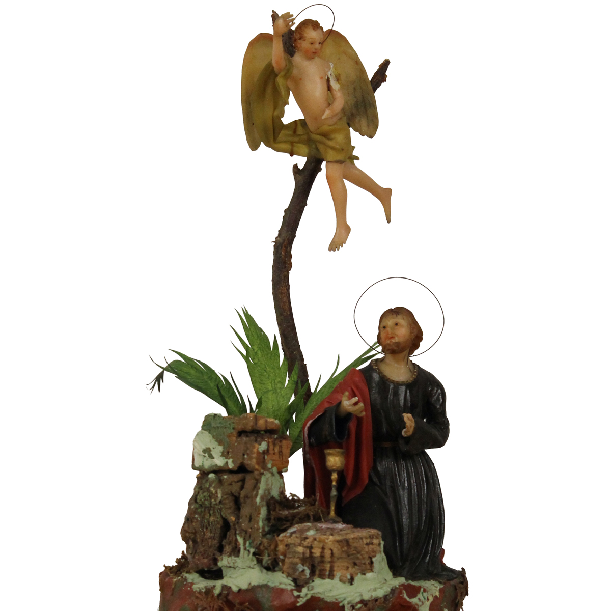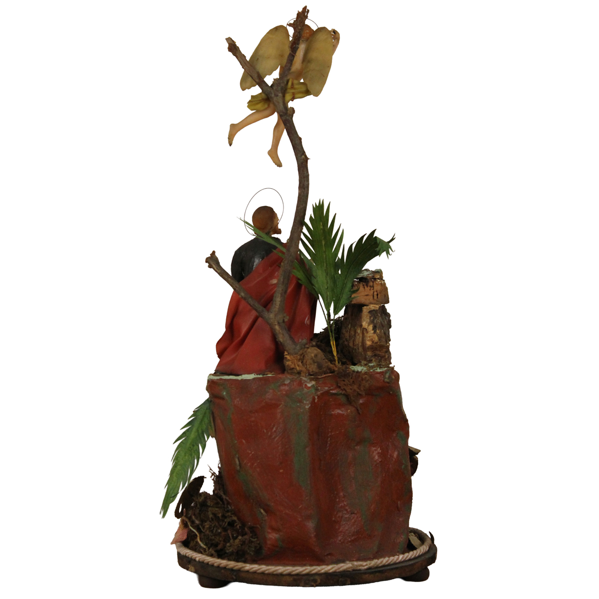 € 800Gruppo in cera policroma a due figure e base in cartapesta (danni alle mani dell'angelo e lievi danni alle mani del Cristo). Base in legno e campana in vetro soffiato. Cm h 50