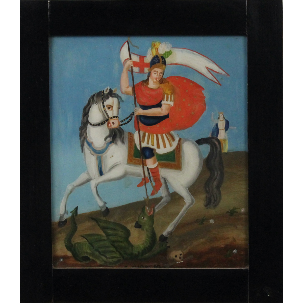 € 300Dipinto ad olio su vetro in cornice in legno. Cm 36x50