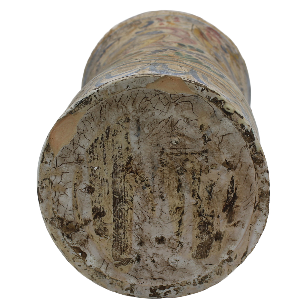 € 100Maiolica policroma con decoro di soldati e motivi ornamentali policromi. Secolo XX. Cm h 54
