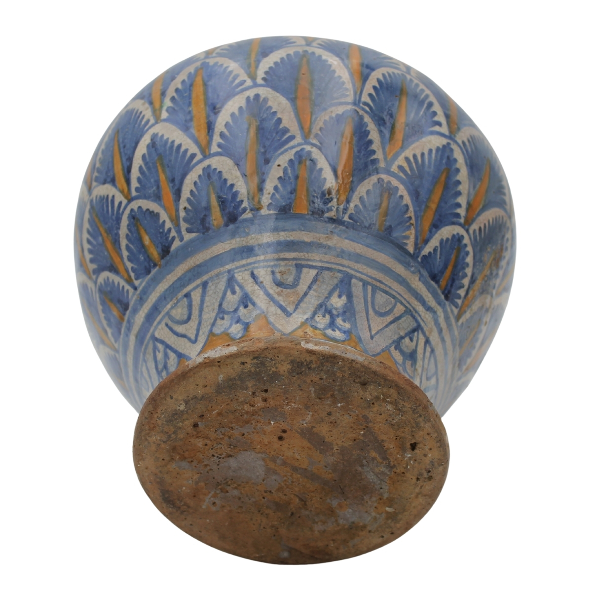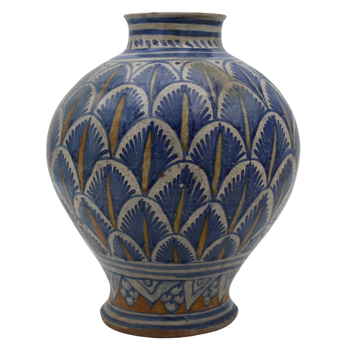 € 3.000Antica maiolica con decoro policromo a tutto tondo a piume di pavone (importanti restauri sul collo e parziali restauri sul corpo). Sciacca. Fine secolo XVI. Cm h 34 Lotto pubblicato nel volume a cura di Governale, A., (1986), Rectoverso - La maiolica siciliana, Altamura Editrice Palermo, tav. 497