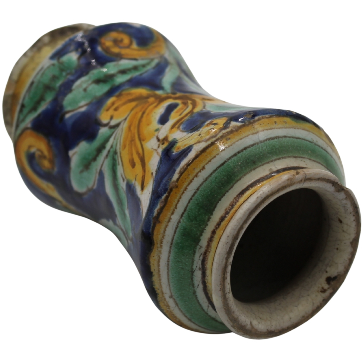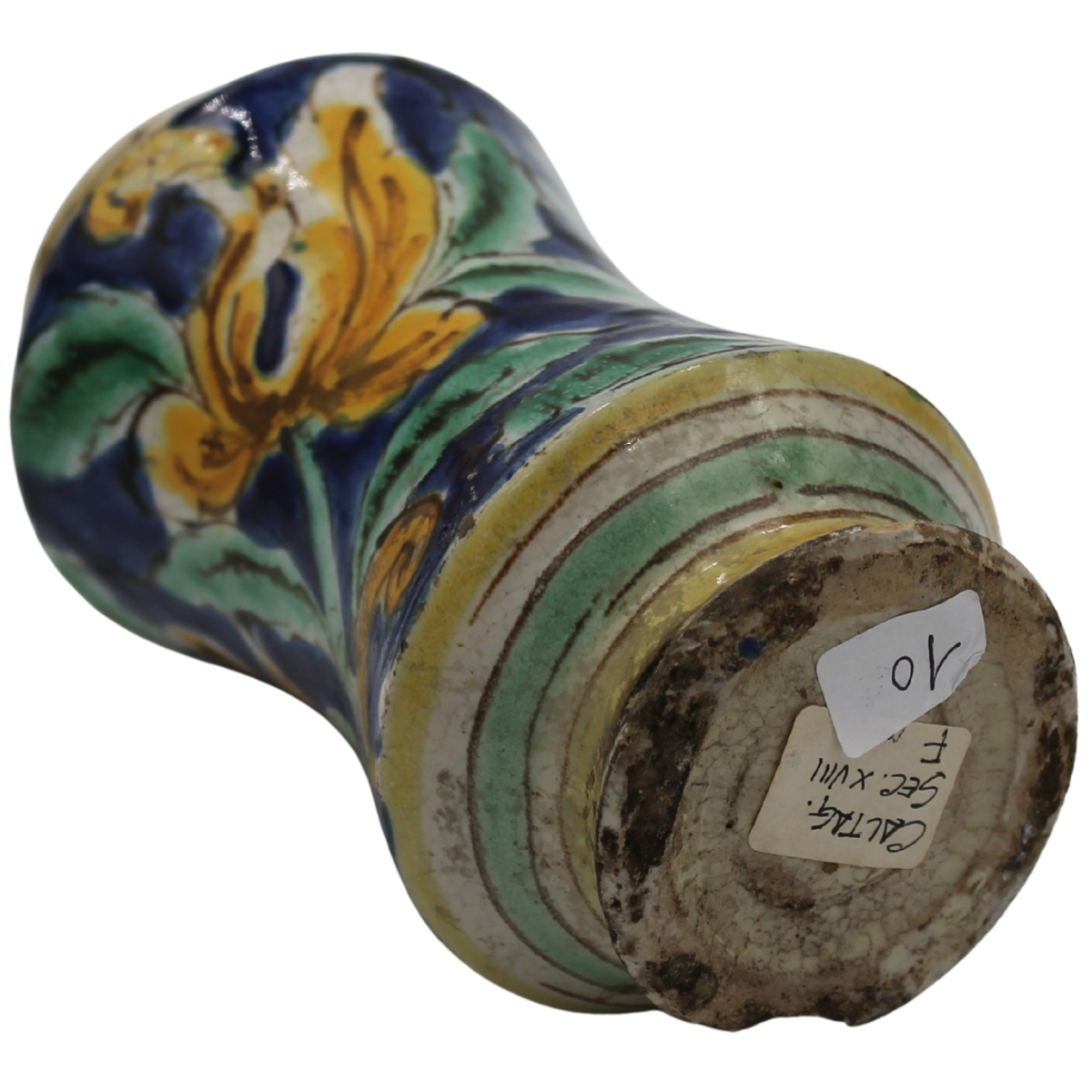 € 500Antica maiolica decorata a tutto tondo con motivi floreali e vegetali policromi. Caltagirone. Secolo XVIII. Cm h 16