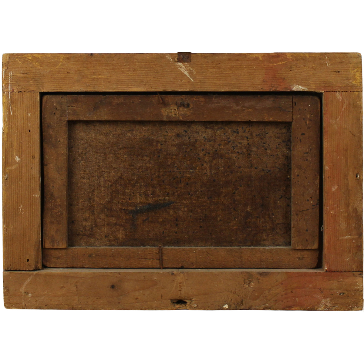 € 250Dipinto ad olio su tela in cornice in legno dorato a canna spaccata (Danni alla tela, lievi restauri e vecchio rifodero). Cm 17x21